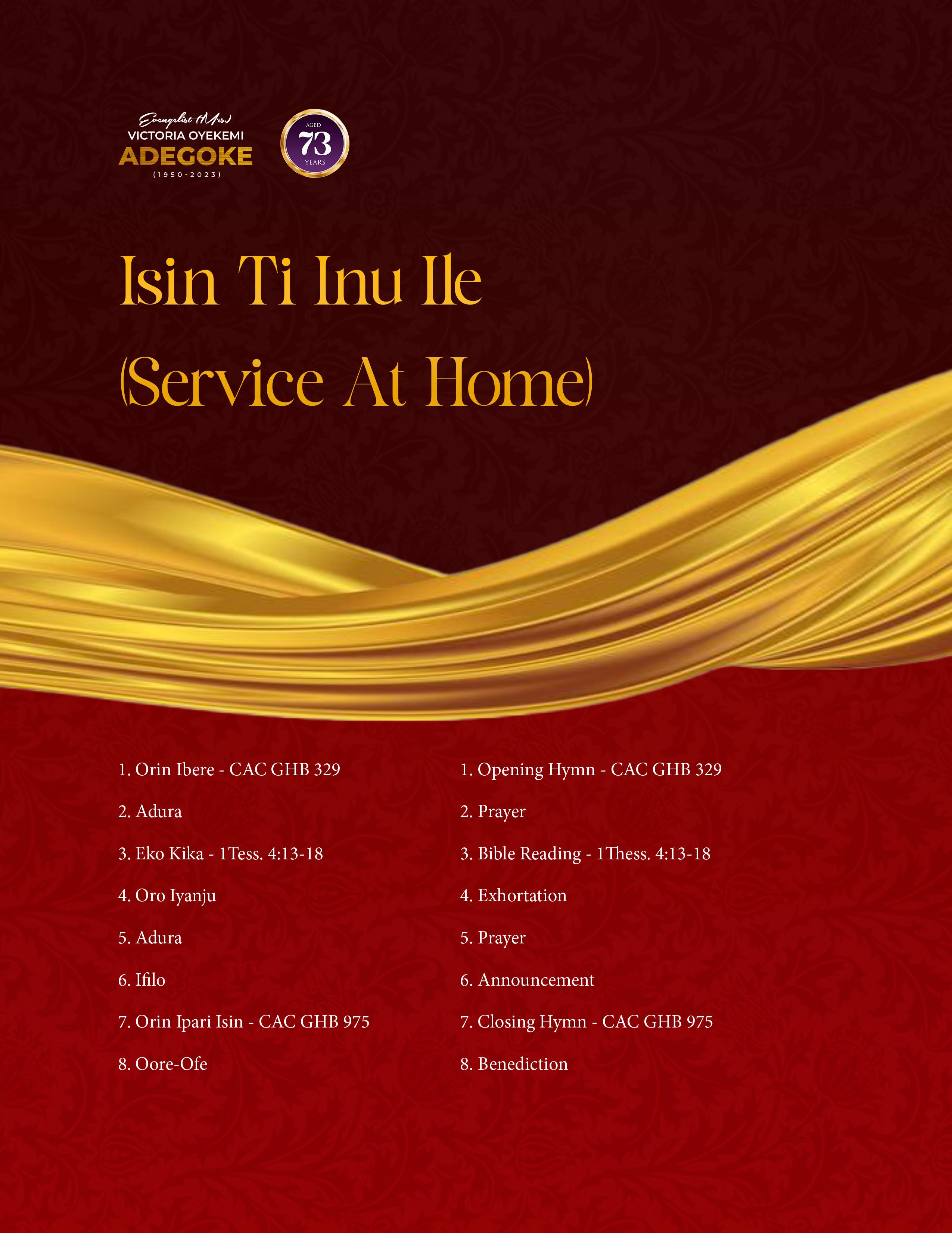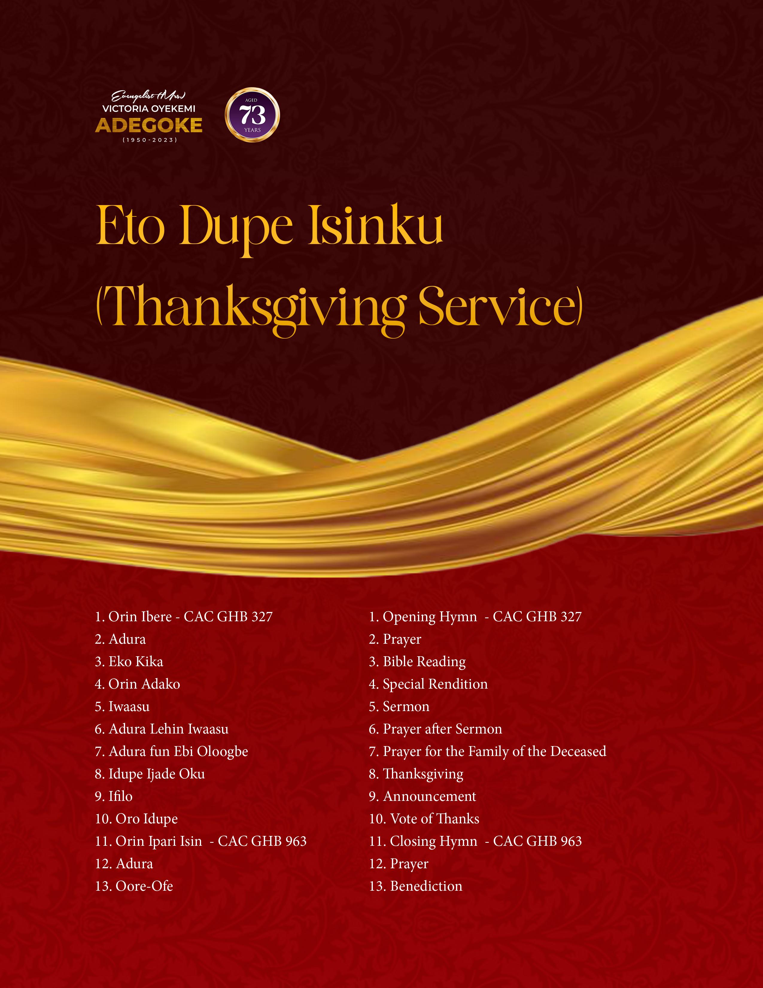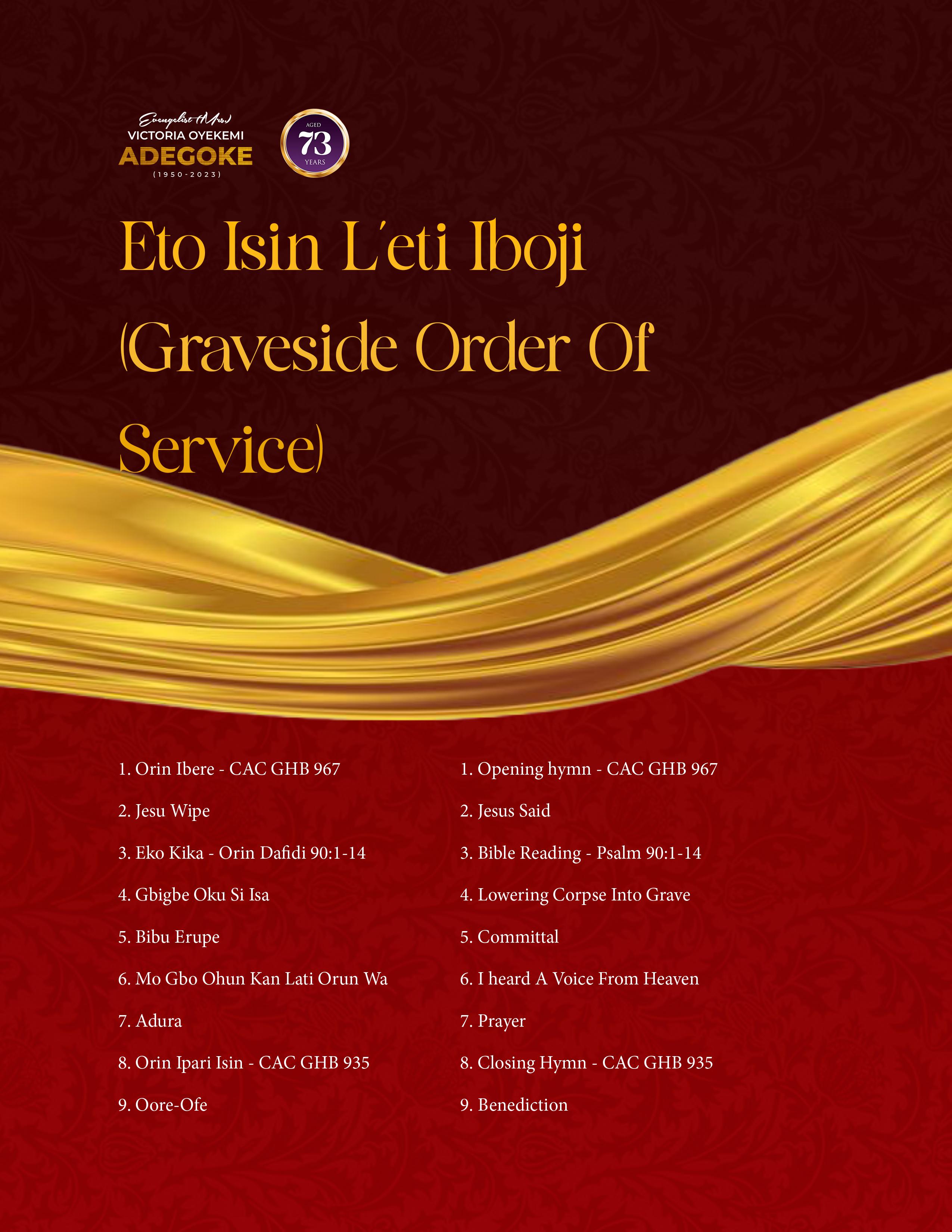 Ifilo (Announcement) Idupe Ijade Oku (Thanksgiving) Oro Idupe (Vote of Thanks)