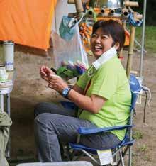 寺阪 洋子 コロナに負けない! スカウト活動が思うように進まない中でのジャ ンボリーへの参加は、班で工夫した「個別の食事方法」や「ソロテン トの生活」が花開いた期間でした。班員の意見をよく聞いて、班をま とめてくれた班長に感謝。「新しい生活」をスカウトと共に考えて柔軟 に取り入れて大会開催につなげてくれたリーダー・スタッフに感謝です。 他の隊との交流が難しい時期でしたが、かき氷やスイカ割はみんなが 笑顔になる良い瞬間でした。 参加隊長 倉敷第14団 岡谷 悦子 参加隊長のことば