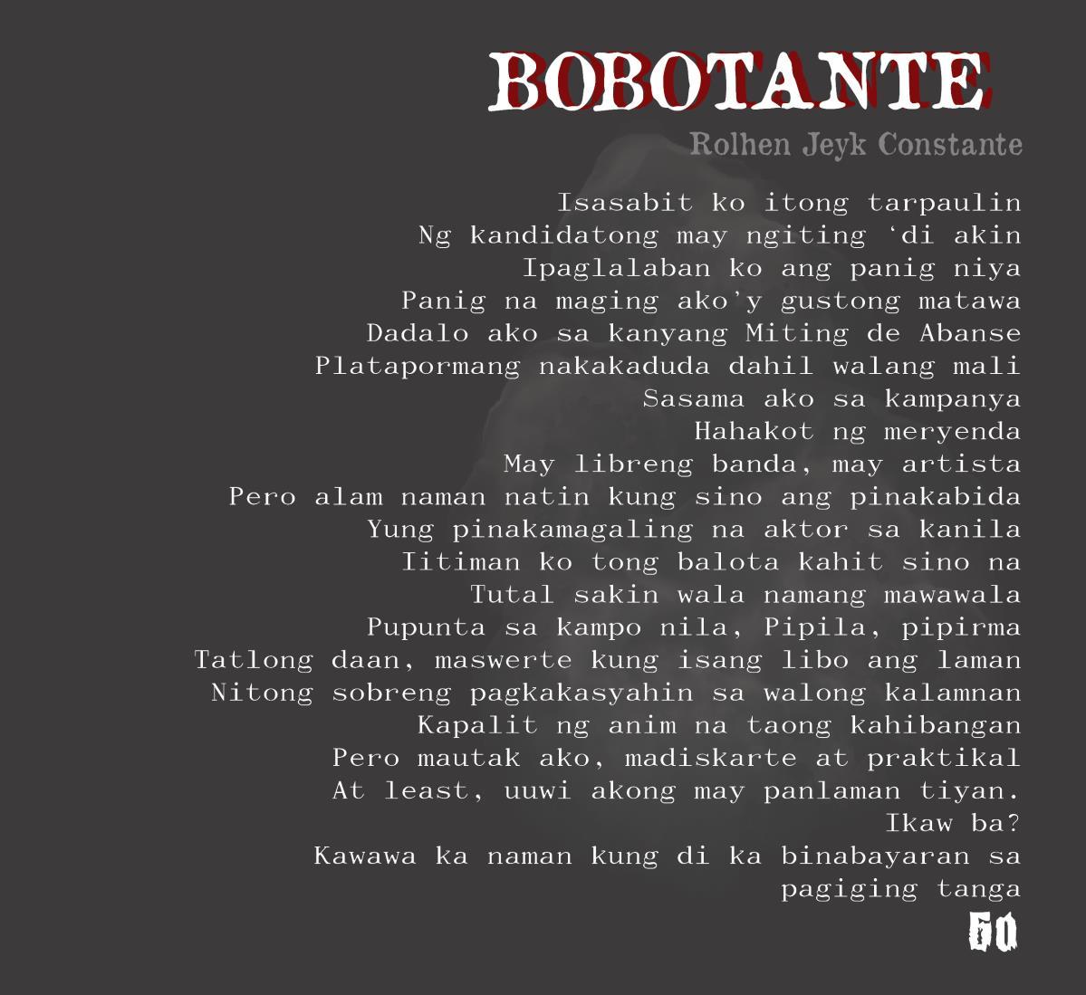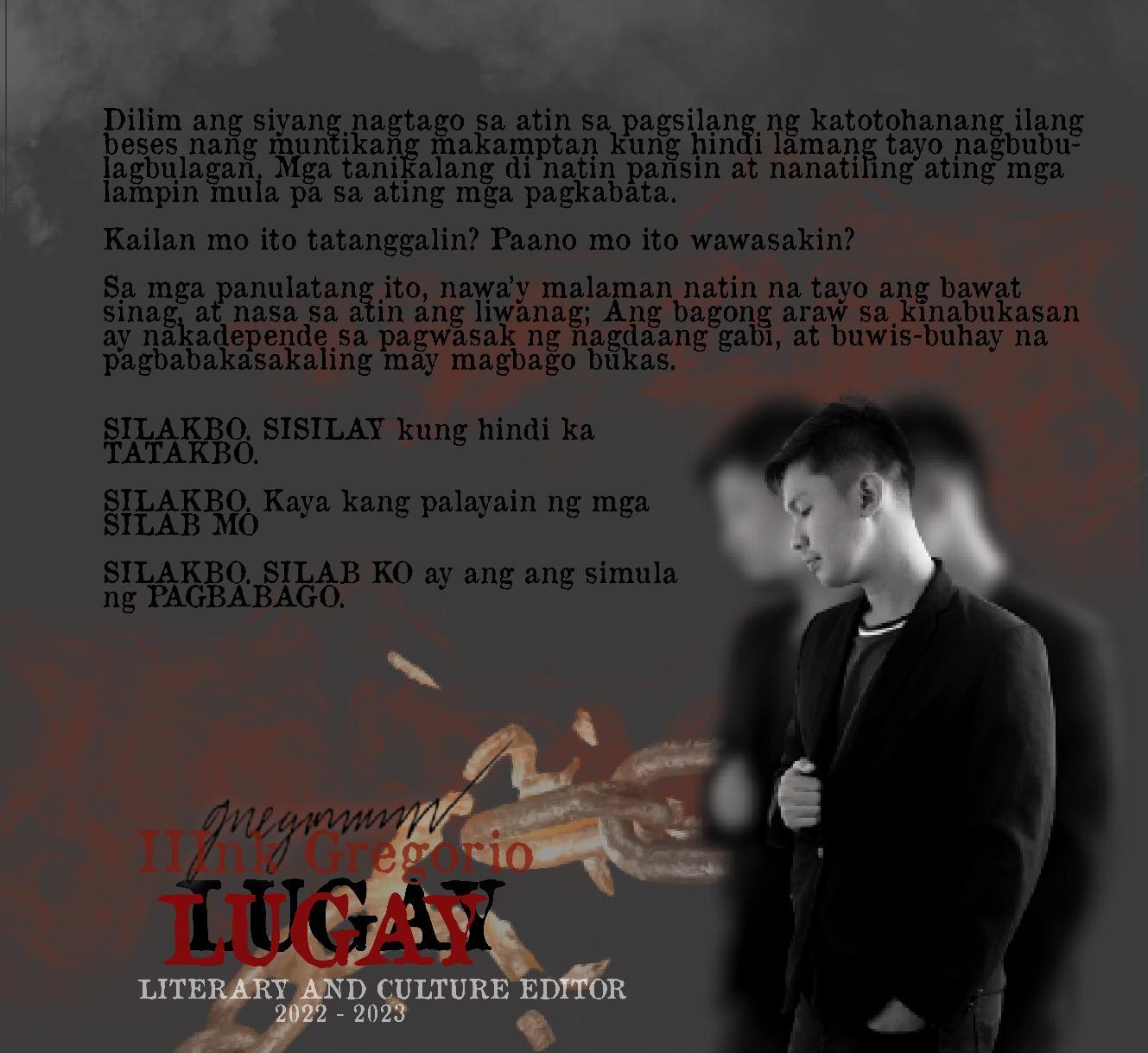 Silakbo ang siyang nagtulak upang makalaya sa kadenang pumigil sa ating paglago. Kahinaang napagtagumpayan dahil sa mga nagliliyab na damdamin, at mga nagaalab na pangarap natin.