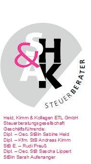 Dipl-Oec. Sabine Heid Dipl.-Kfm. Andreas Kimm Rechtsbeistand Wolfgang Fromm E.-Rudi Preuß Ihr Kompass im Steuerrecht Werner-Heisenberg-Str. 16 34123 Kassel Tel.: 0561/500494 0 Fax: 0561/500494 22 E-Mail: post@heid-kimm.de www.heid-kimm.de zertifiziert nach DIN EN ISO 9001 Heid, Kimm & Kollegen ETL GmbH Steuerberatungsgesellschaft Geschäftsführende: Dipl.-Oec. StBin Sabine Heid Dipl.-Kfm. StB Andreas Kimm StB E.-Rudi Preuß Dipl.-Oec. StB Sascha Lippert StBin Sarah Aufenanger