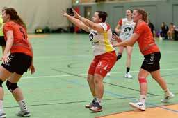 Heimmannschaft in der zweiten Hälfte de fensiv stärker. Im Angriff ging sie effizienter vor und ließ die HSG zwischenzeitlich mit sechs Toren Unterschied hinter sich. Ihre Gegenspielerinnen versuchten in den letz ten Minuten, die Partie doch noch einmal zu drehen, mussten sich aber schließlich trotz kämpferischer Leistung geschlagen geben. „Wir sind verdient Derbysieger geworden“, urteilte Kliesch. „In der ersten Hälfte hat es der Gegner gut gemacht, da haben wir eine schlechte Abwehrleistung abgeliefert. Dabei war unser System richtig, nur die Ein stellung hat nicht gestimmt. In der zweiten Halbzeit haben wir durchgewechselt und die Deckung besser gestellt.“