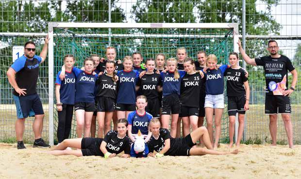 Stehend (von links nach rechts): Ricky Cramer (Trainer), Emi lia Kulle, Mia Brandt, Mathilda Sprafke, Lina Schott, Marie Manns, Caro Englich, Raya Richter, Lara Galster, Joleen Frey, Pauline Sandrock, Lisa Gajewski, Leona Merkus, Hanna Bark, Joana Braune, Mara Rodhe und Mario Richter (Trainer). Vorne: Juli Schmalz, Keni Heckmann und Emma Beekhuis