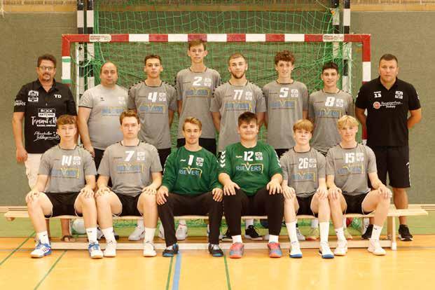 Hintere Reihe (v. l. n. r.): Stefan Willrich (Trainer), Jan Jeschner (Betreuer), Tim Viereck, Luca Apel, Alexander Denn, Jan Philipp Linke, Mike Umbach (Be treuer) und Matthias Henne (Co-Trainer) Vordere Reihe (v. l. n. r.): Jonah Staub, Marcel Angersbach, Julius Kreis, Yves Müller, Emanuel Pahl, Daniel Müsken, Christoph Müller und Frederik Barz Nicht abgebildet: Dominik Berndt, Leon Reimer, André Minko, Filipe Götte und Tom Scholler