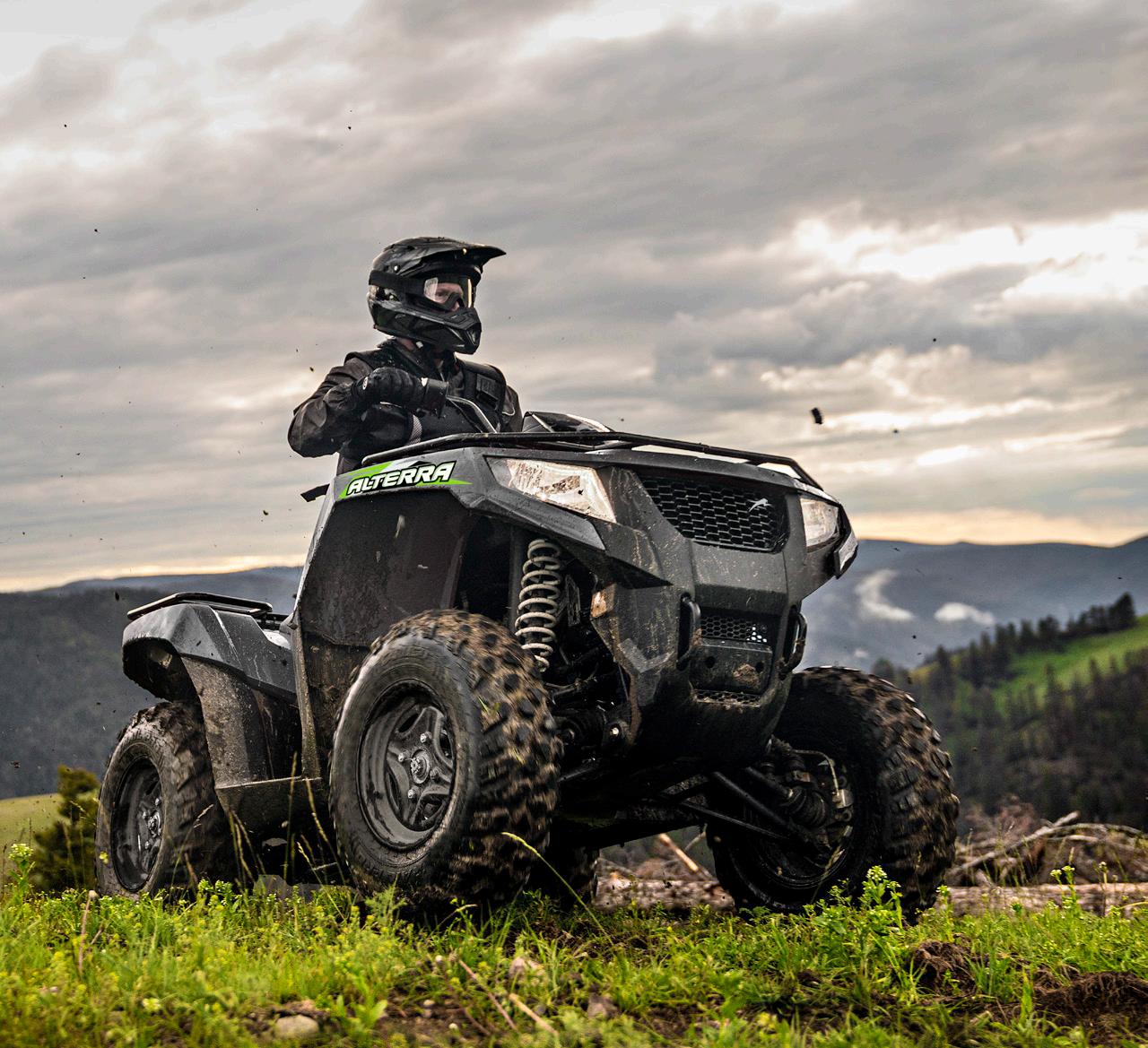 All specifications, claims, prices and information contained within are based upon current knowledge as of September 1, 2022, and are subject to change without notice. Prices do not include freight, handling or setup charges. ATVs and ROVs can be hazardous to operate. Improper use can cause severe injury or death. All Arctic Cat Off Road vehicle operators should read the Owner’s Guide for their vehicle before operating. All riders shown in this catalog are professional riders in a controlled environment. For your safety, each rider must wear a seat belt (if equipped); and use handholds/steering wheel, use doors and cab nets (if equipped), and stay completely inside the vehicle. For all Arctic Cat Off Road vehicles other than the Prowler EV, each rider must also wear an approved helmet, eye protection and protective clothing. Never operate on paved surfaces or public roads. Avoid excessive speeds and sharp turns, and be particularly careful on difficult terrain. Never engage in stunt driving, and never drive or ride under the influence of alcohol or drugs. Never carry a passenger in the cargo box or exceed seating capacity on an ROV; never carry a passenger on a single-rider ATV. Unless otherwise noted, Arctic Cat Off Road vehicles are only for operators who are 16 years of age or older who have a valid driver’s license. The minimum operator age for the Alterra 150 is 14, and the minimum operator age for the Alterra 90 is 12. Riders younger than 16 require adult supervision. Arctic Cat Off Road recommends that all riders take a training course. For ATV safety or training information in the U.S., call the ATV Safety Institute at (800) 887-2887. In Canada, please contact the Canada Safety Council at (613) 739-1535 or see your dealer. For ROV training, visit http://rohva.org. All product names, logos, trademarks, and brands are properties of their respective owners. Arctic Cat, Arcticwear, Alterra, Black Magic, Fast-n-Latch, MudPro, Prowler, SpeedRack, Stampede, TRV, and Wildcat, are trademarks of Textron Inc. or its affiliates and are registered in the U.S. and other countries. Havoc, HDX, Prowler Pro, Prowler EV, Prowler 500, Ready 2 Roll, SpeedLock, SpeedPlow, SpeedRatchet, Arctic Cat Off Road, TigerTrax, Wildcat X, Wildcat XX, Wildcat Sport, Wildcat Trail, WindGuard, WindLock, XT, XTX, and XTZ are trademarks of Textron Inc. or its affiliates.