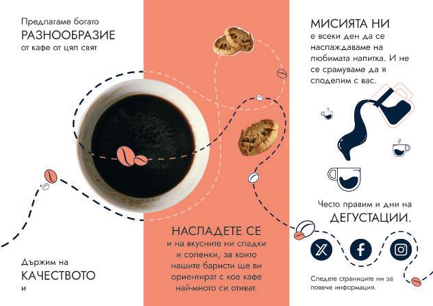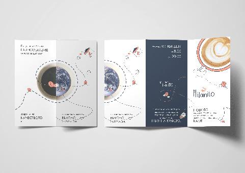 The concept is to show the ‘coffee journey’ literally, with the coffee bean suggesting to the viewer to turn the trifold brochure.
