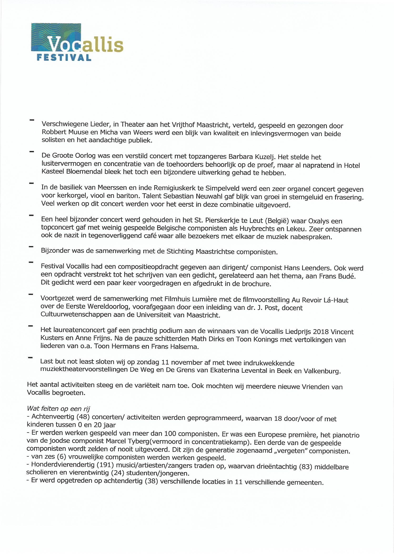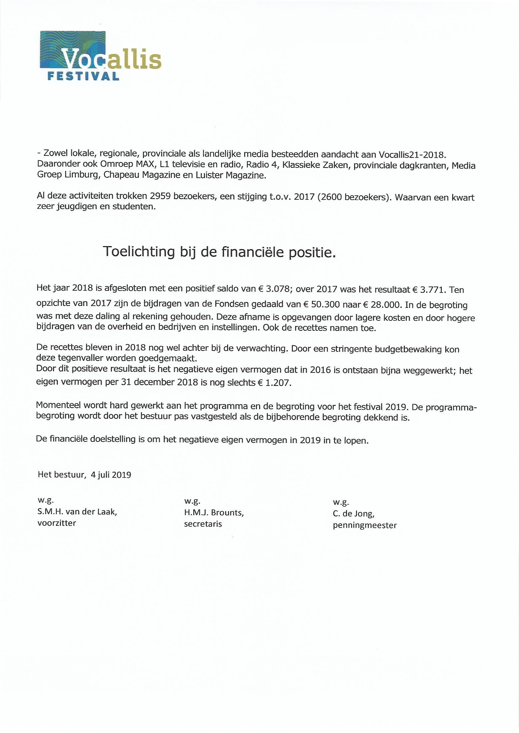 Verkorte Jaarrekening Stichting Vocallis boekjaar 2018 - d.d. augustus 2019