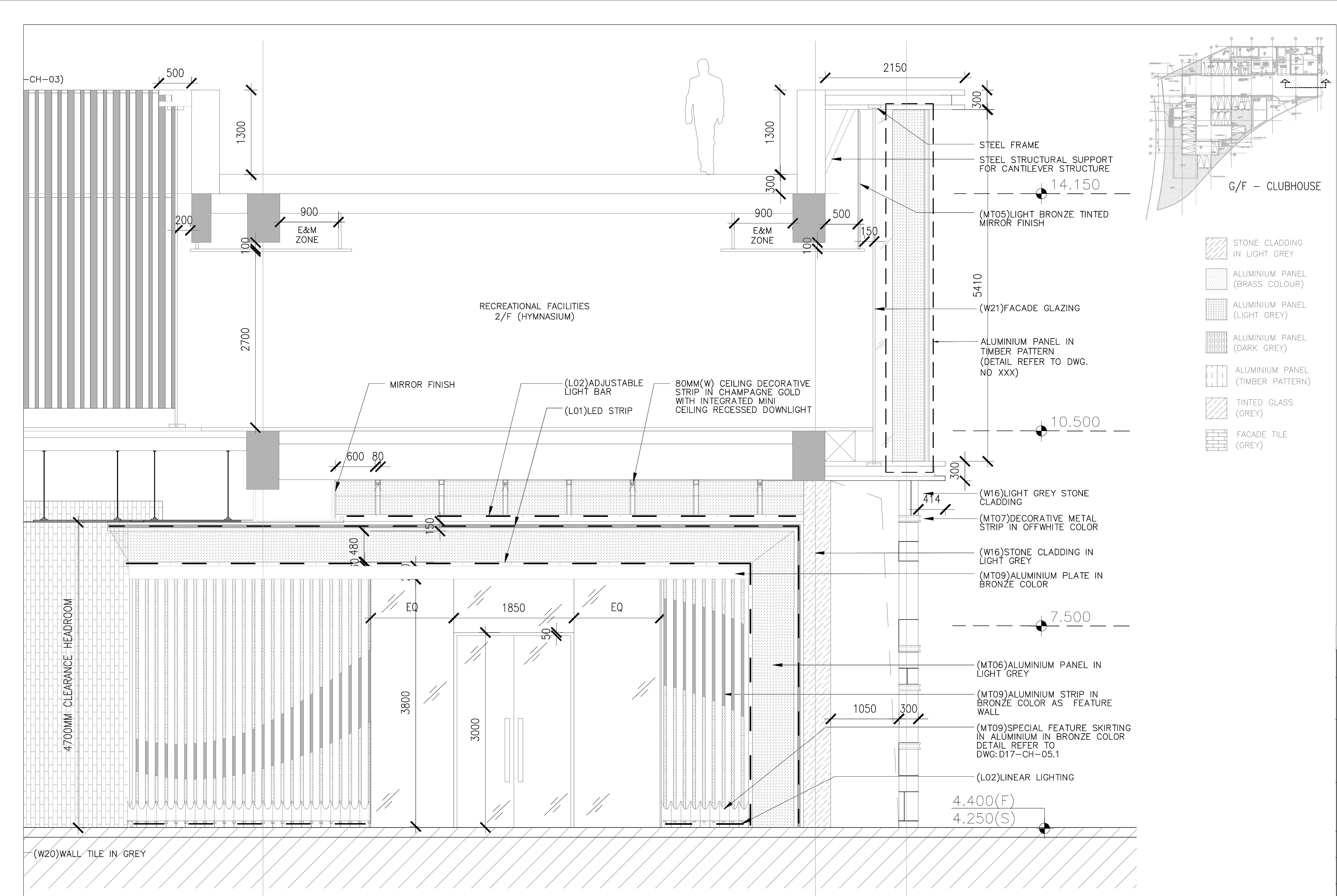 CLUBHOUSE ENTRANCE ELEVATION DRAWING