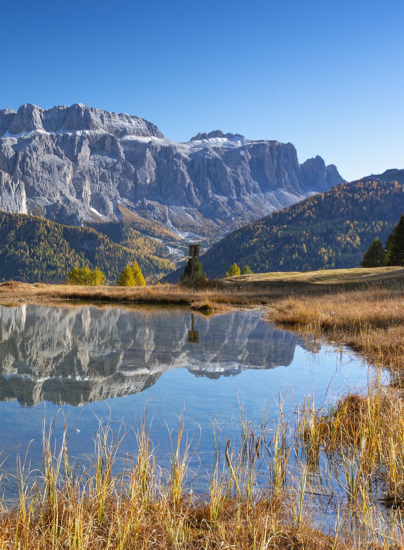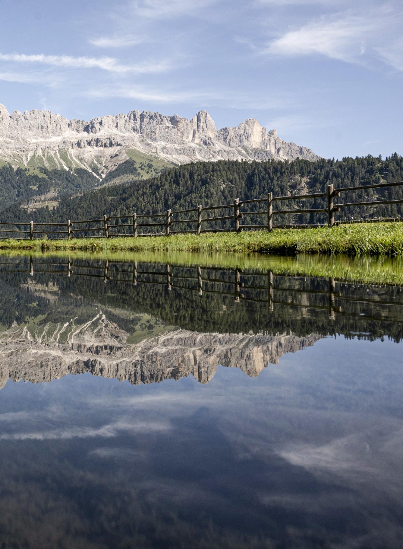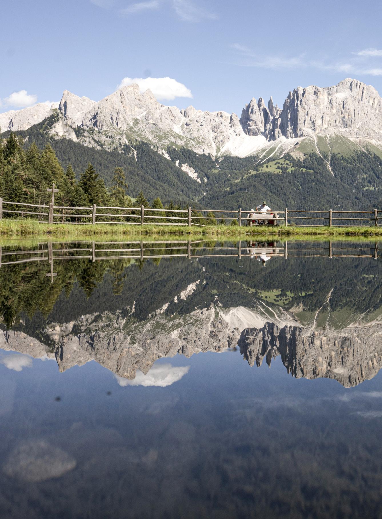 D / Alle Wege führen zum Tierser Alpl. Das Schutzhaus befindet sich am gleichnamigen Sattel und ist Knotenpunkt sämtlicher Wanderrouten: von der Seiser Alm zum Rosengarten oder vom Schlern zum Lang- und Plattkofel. Seit 50 Jahren steht das Schutzhaus hier auf einer Höhe von 2500 m. Obwohl die Zeit hier stehengeblieben zu sein scheint, bietet das Tierser Alpl, das mit dem Südtiroler Architekturpreis ausgezeichnet wurde, einen kleinen auf die Zeit angepassten Hauch von Luxus.
