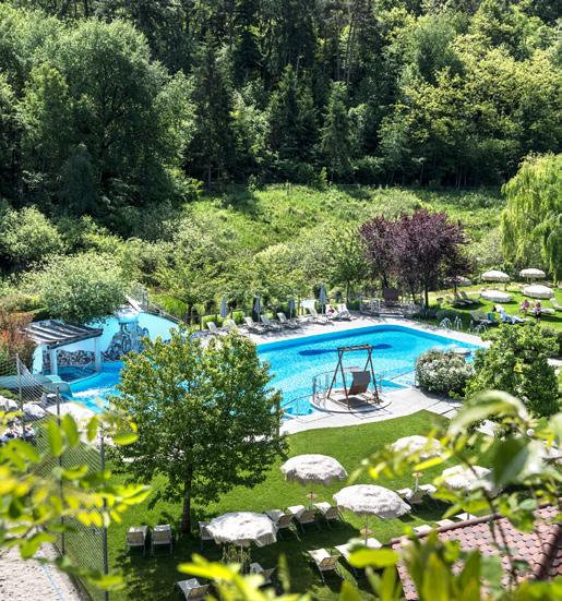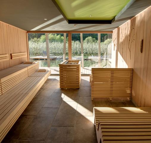E / Our wellness programme in the sauna world “Arbor Vitae” as well as in our beauty area are the ideal way to complement all the activities around the Gartenhotel. Cooling down in the outdoor adventure pool or in the natural bathing pond is particularly convenient. You will find fun and relaxation in the renovated indoor pool, the new textile sauna and the new relaxation rooms. Idyllically situated, just a few minutes’ walk from the Gartenhotel Moser, you will find our lake house, where you can enjoy a swim and soak up the sun. Rowing boats, canoes and stand-up paddleboards offer plenty of action. Our various bathing attractions offer you the chance to indulge, splash around and relax.