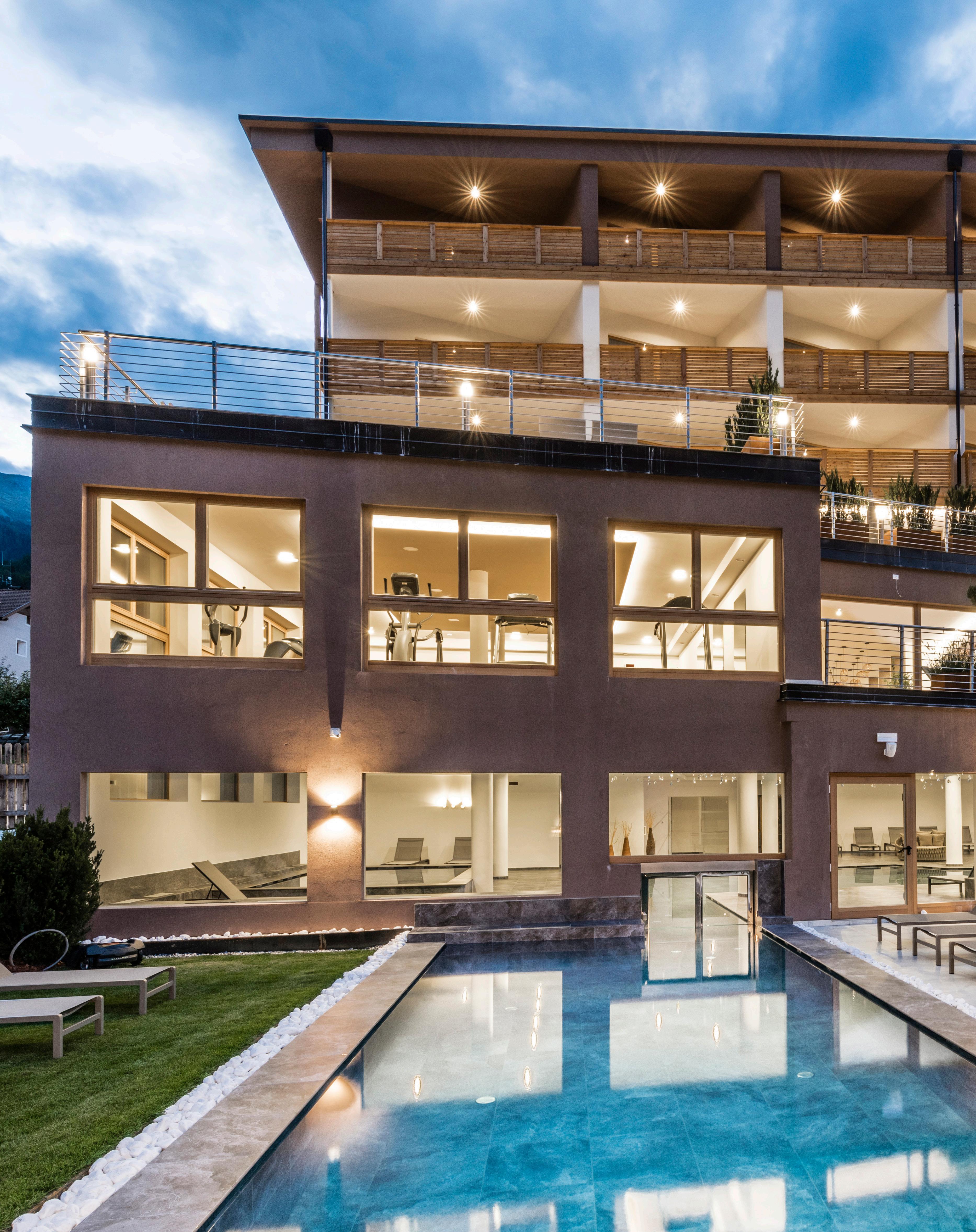 Vom Gipfel des Berges bis zu den Zehenspitzen, die im Wasser des Pools hängen, schaffen wir ein Urlaubserlebnis ganz im Zeichen der Elemente. Dieses Konzept setzen wir vor allem in unserem Wellnessbereich um, wo Was -