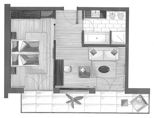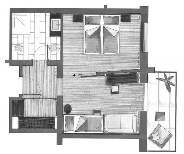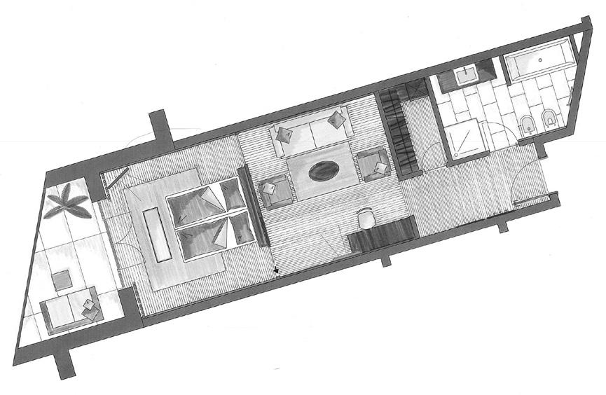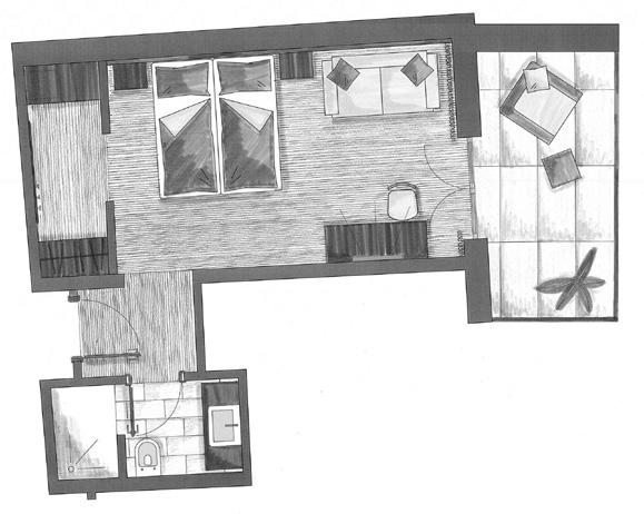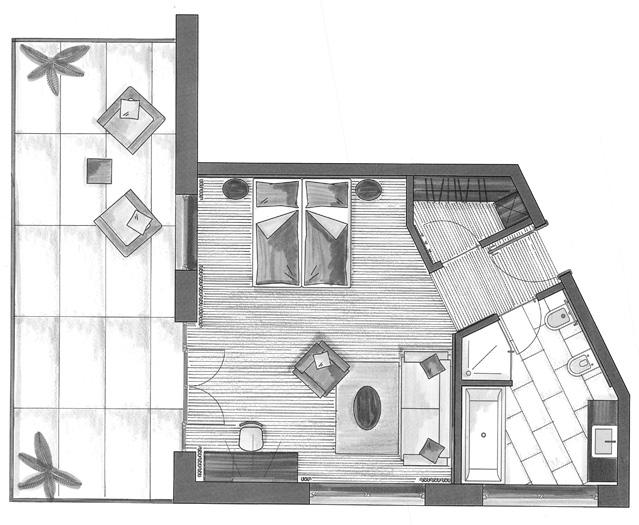 Die Skizzen der Zimmer beziehen sich auf ein bestimmtes Zimmer. Die Raumaufteilung kann sich• Kostenlose Nutzung des neuen 2.000 m2 großen Wellnessund Spabereichs mit Blick auf die Vinschger Bergwelt