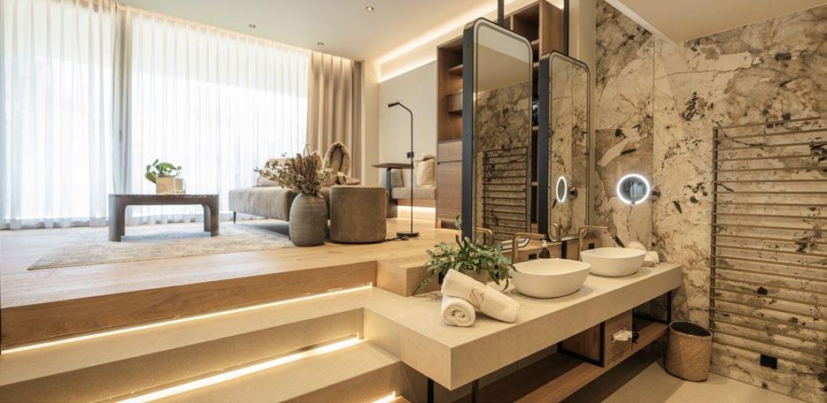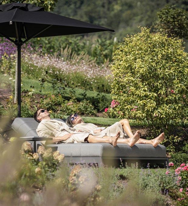 liegt). Der Sommer bietet vielseitigere Reisemöglichkeiten als der Winter, doch daran allein kann es nicht liegen. Sicherlich spielt auch die Inflation eine Rolle, vor allem für den sogenannten Mittelstand, aber nicht nur. Es ist das Reiseverhalten, das sich grundsätzlich ändert. Das Preis-LeistungsVerhältnis steht wieder zunehmend im Vordergrund. Wer es sich leisten kann, der wählt nun häufiger Fernreisen, auch Glamping ist in aller Munde, Nachhaltigkeit sowieso. Laut der ADAC Tourismusstudie 2023 gehört eine intakte Natur für 60 % der Befragten zu den wichtigsten Buchungsfaktoren. Dass Naturverbundenheit mit sanftem Luxus kombiniert werden kann, zeigt das Eco Suites Amaril in Kastelbell,