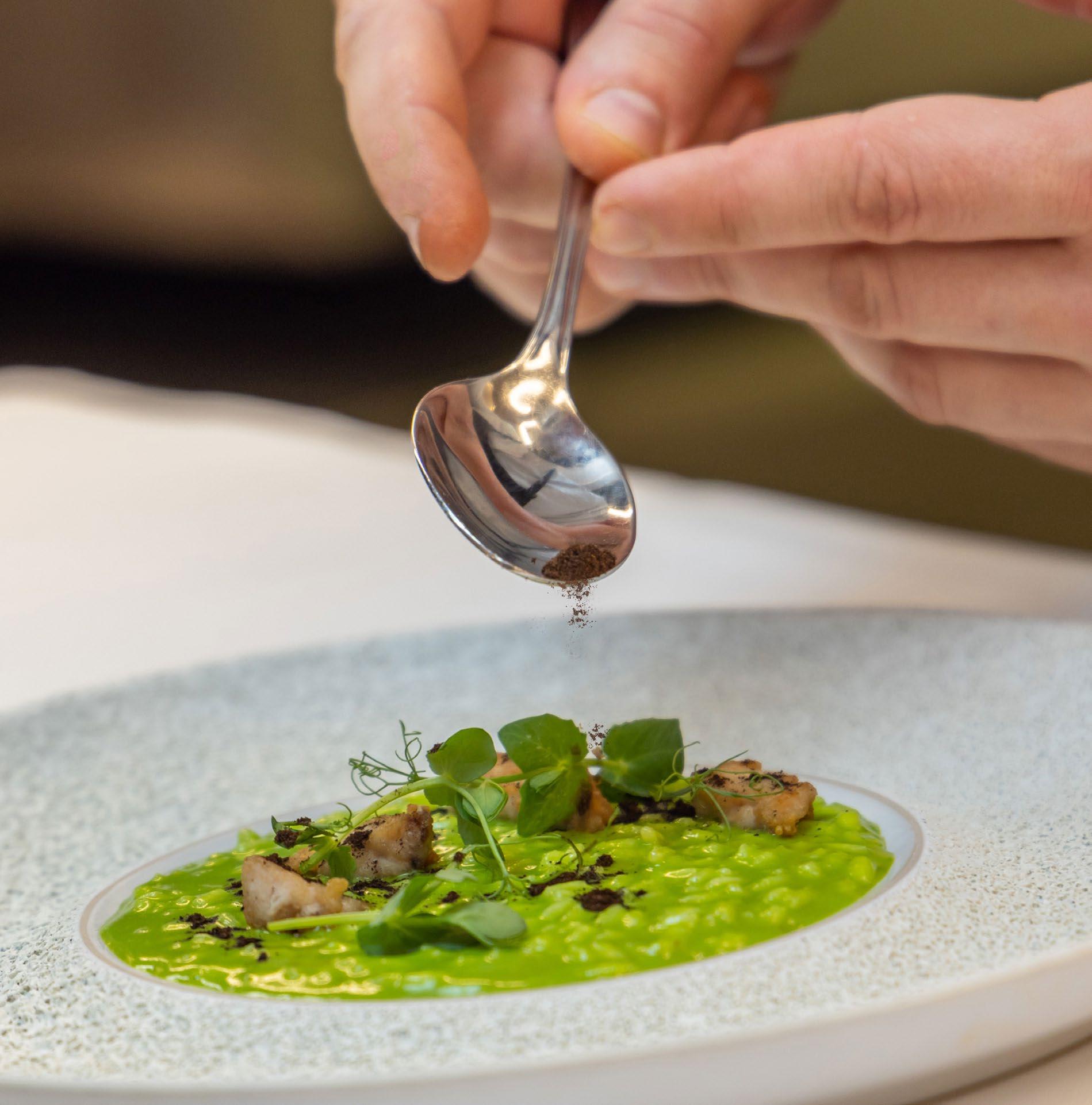 Faden des Kulinarikkonzepts beginnt schon bei der hohen Qualität und der Liebe zum Detail. Dafür werden nur die besten Zutaten, biologisch, saisonal und aus der Region, gewählt und das Küchenteam legt großen Wert auf die Abfallvermeidung. Dieser Respekt vor den verwendeten Rohstoffen zeigt sich auch in der Wertschätzung des gesamten Produkts, das dem Gast mit einem gastronomischen Erlebnis der besonderen Kombinationen serviert wird. So präsentiert der Chefkoch Gerichte, die das Auge begeistern und die Sinne durch aufregende Geschmackskompositionen verführen. Zu guter Letzt sorgt das elegante Ambiente noch für eine unvergleichlich erhabene Atmosphäre, die den Genuss unterstreicht.