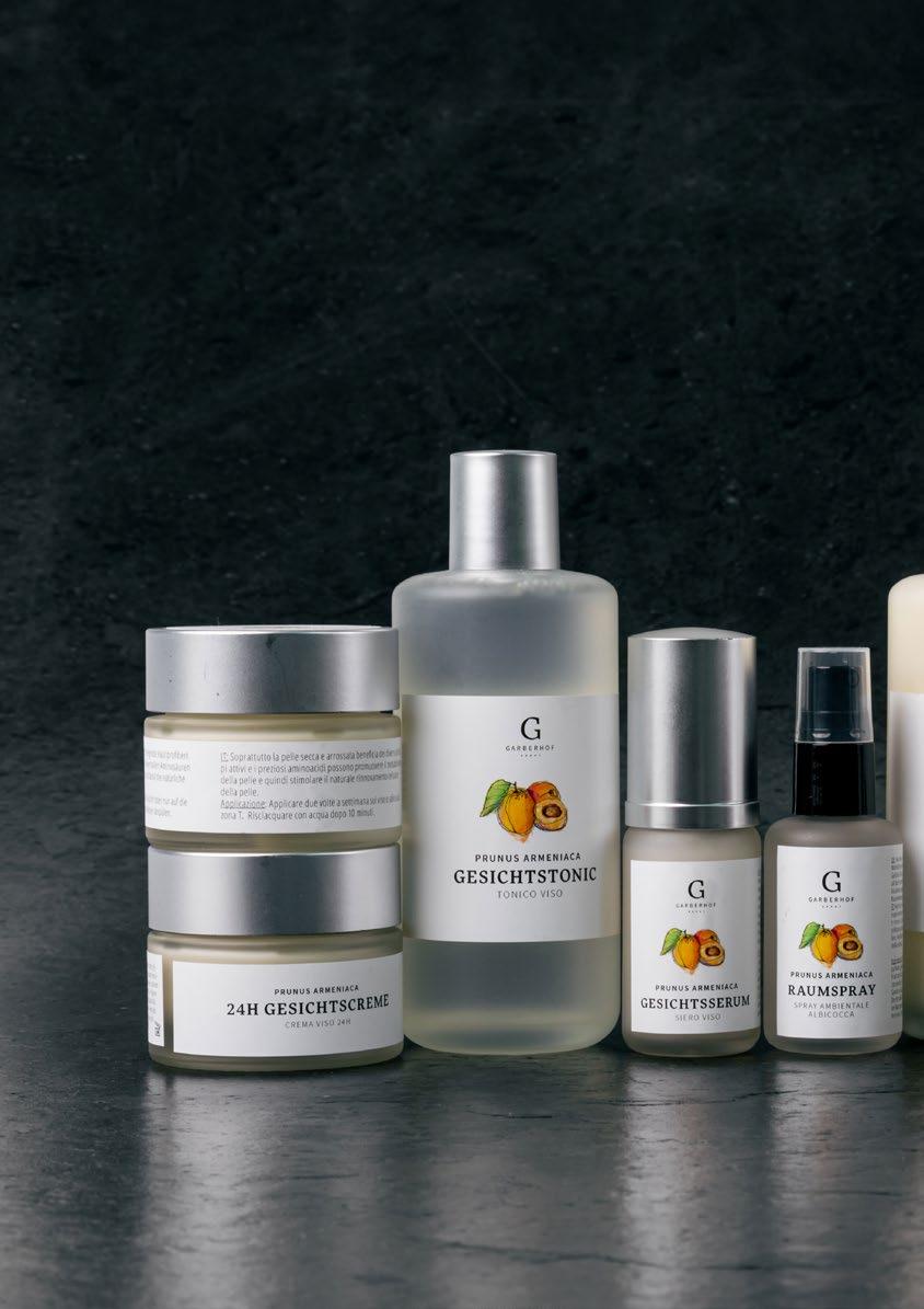 Nel 2021 e 2022, in collaborazione con la ditta di cosmetici naturali Alpienne, abbiamo dato vita a una nostra linea di prodotti cosmetici. L’elemento principale è l’albicocca, ricca di vitamina E, levigante e ideale per la pelle stressata… un vero toccasana!