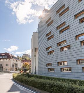 altoatesino, tra la stazione ferroviaria e il centro storico, eppure facilmente accessibili in auto e isolate di rumori cittadini. I lavori sono ancora in corso, ma l’eleganza della facciata e dell’intero complesso si lascia già intuire chiaramente. Questo progetto, innovativo e sostenibile, è stato ideato dall’architetto Sir David Chipperfield, vincitore del Premio Pritzker nel 2023, e si caratterizza per particolarità davvero esclusive. Gli appartamenti si sviluppano sul tetto dell’edificio mentre, a 15 m di altezza, si trova un’area verde con giardini privati; le soluzioni con loggia e terrazza ai piani superiori regalano una vista panoramica senza paragoni e dagli attici è possibile am-