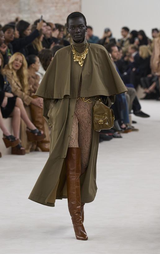 Per l’autunno/inverno 2024 il verde oliva ha catturato l'attenzione di tutti: dal look completo di Ferragamo al trench fluido di Chloé. Gli stilisti si sono distaccati dai toni autunnali tradizionali, osando un uso innovativo di questa tinta. Il verde, simbolo di nuovi inizi, ha sostituito il rosso brillante sulle passerelle. Loewe e Jil Sander hanno immerso i loro set in verde, mentre The Row e Saint Laurent hanno optato per una sfumatura più sobria. Senza dubbio, è il colore della stagione.