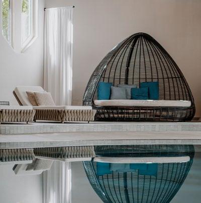 Im Wellnesshaus die beiden Hängestühle. Wenn kaum jemand da ist, die Ruhe und der