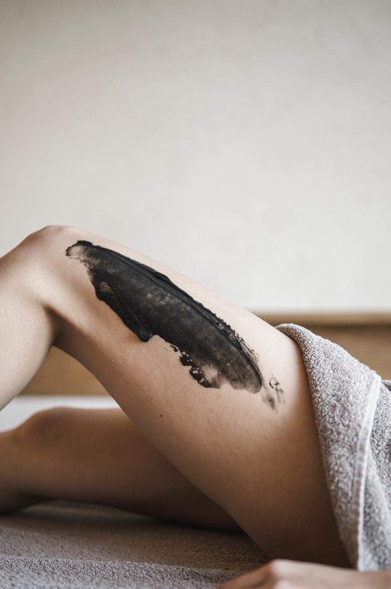 I Trattamento con il fango nero. Disintossica, purifica, decongestiona le gambe pesanti e idrata. Include: lavaggio delicato con mousse detergente, siero corpo complesso specifico, spray corpo rinfrescante e riscaldante, fango ai carboni attivi e crema nutriente.