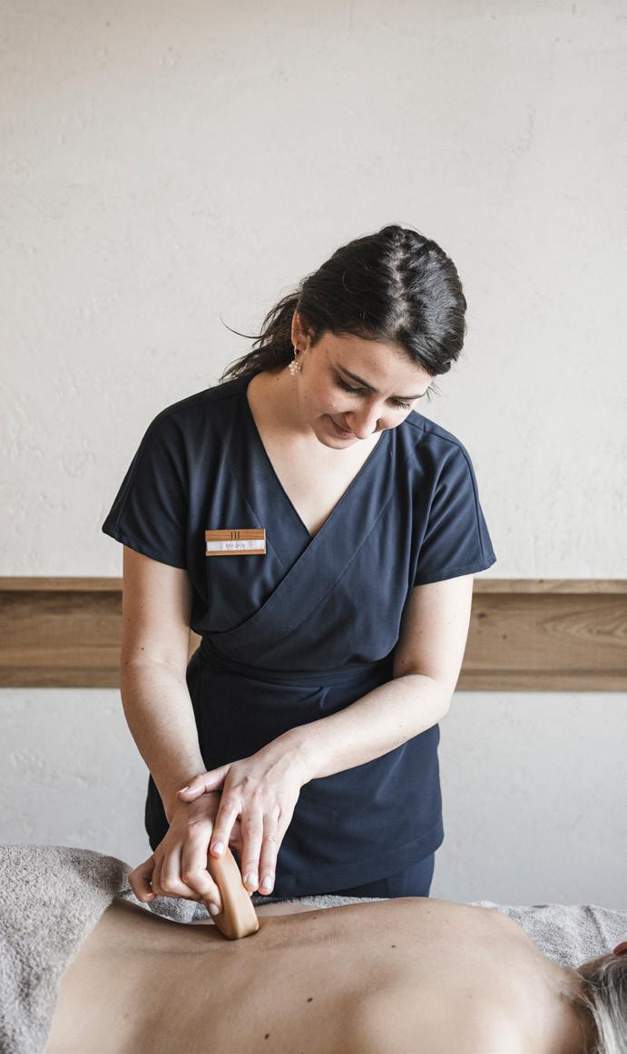 E The Dolomites are a treasure chest of infinite natural wonders. We draw from these to source medicinal herbs, invigorating spring water, relaxing aromas and the same dolomite mineral used in our spa. Here traditional techniques meet innovative products for outstanding results. In addition, each ritual is adapted to the individual, offering physical and mental well-being, as well as a satisfying feeling of serenity.