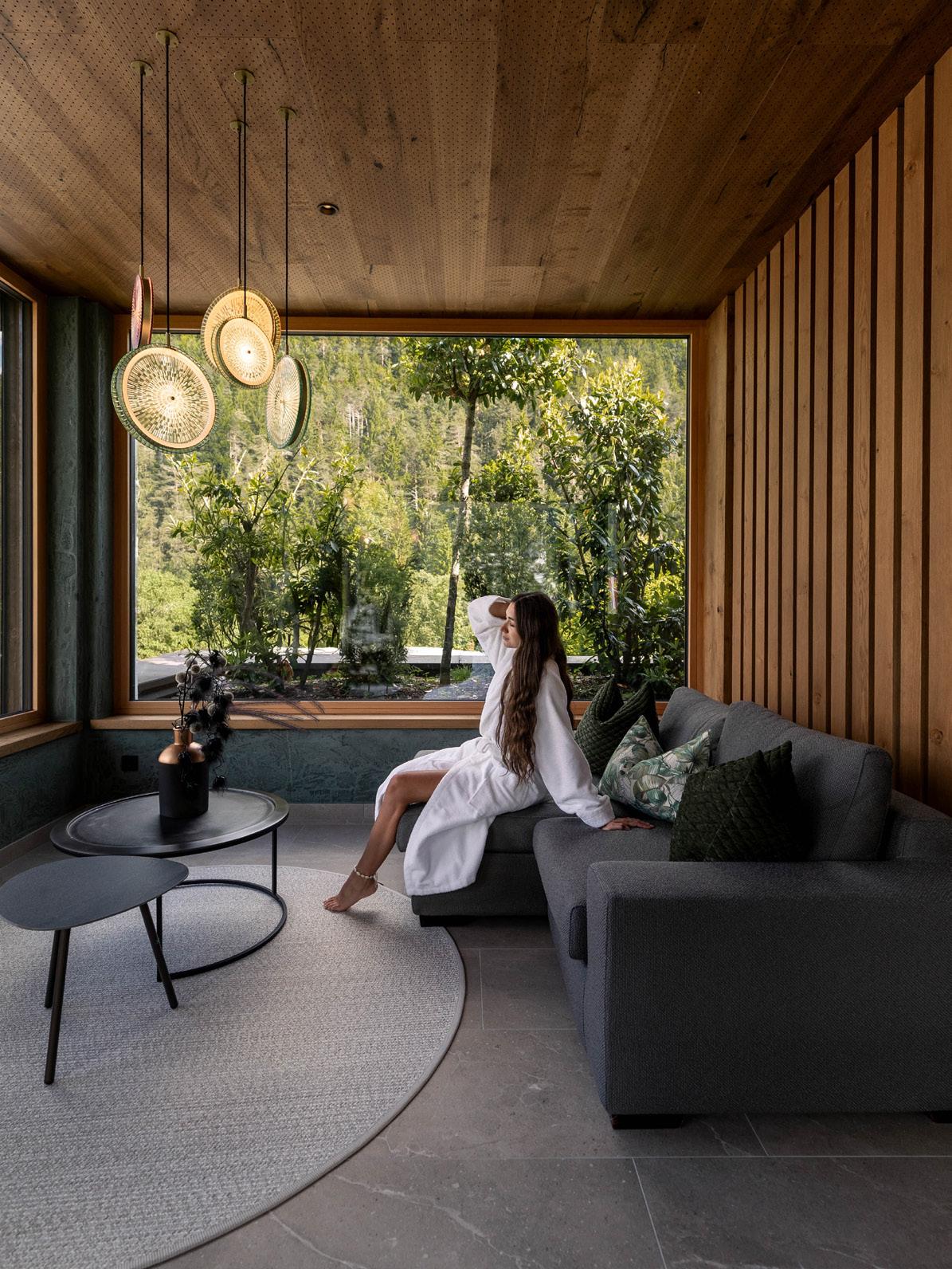 • Bewegungsraum (130 m2): Weitläufig und lichtdurchflutet mit Waldblick. Mit Yoga- und Gymnastikequipment sowie TRX-Bändern.
