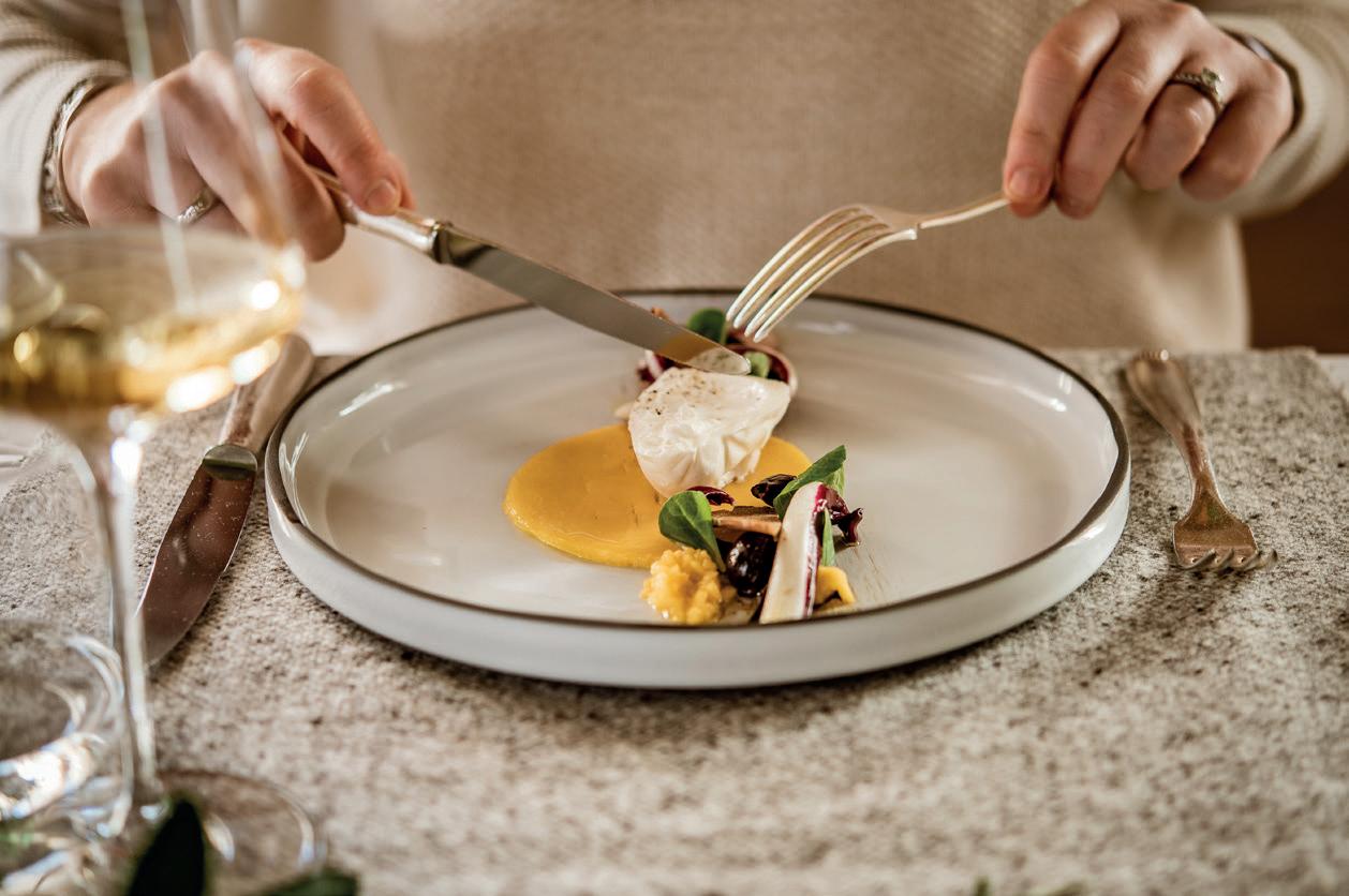 Alpine, innovative, balanced. I consider my style of cooking to be bold alpine high cuisine. As a trained carpenter, I like to innovatively transform flavours into textures and draw a lot of inspiration and expertise from this down-to-earth craft.