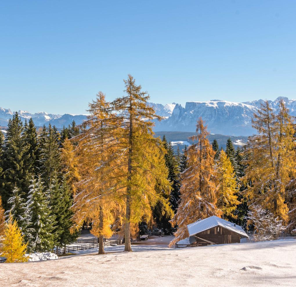 at the foot of the Sciliar mountain during the winter months. Just a few steps from the car park, it offers an authentic, pure and unforgettable experience. No skates? No problem, you can hire them on-site.