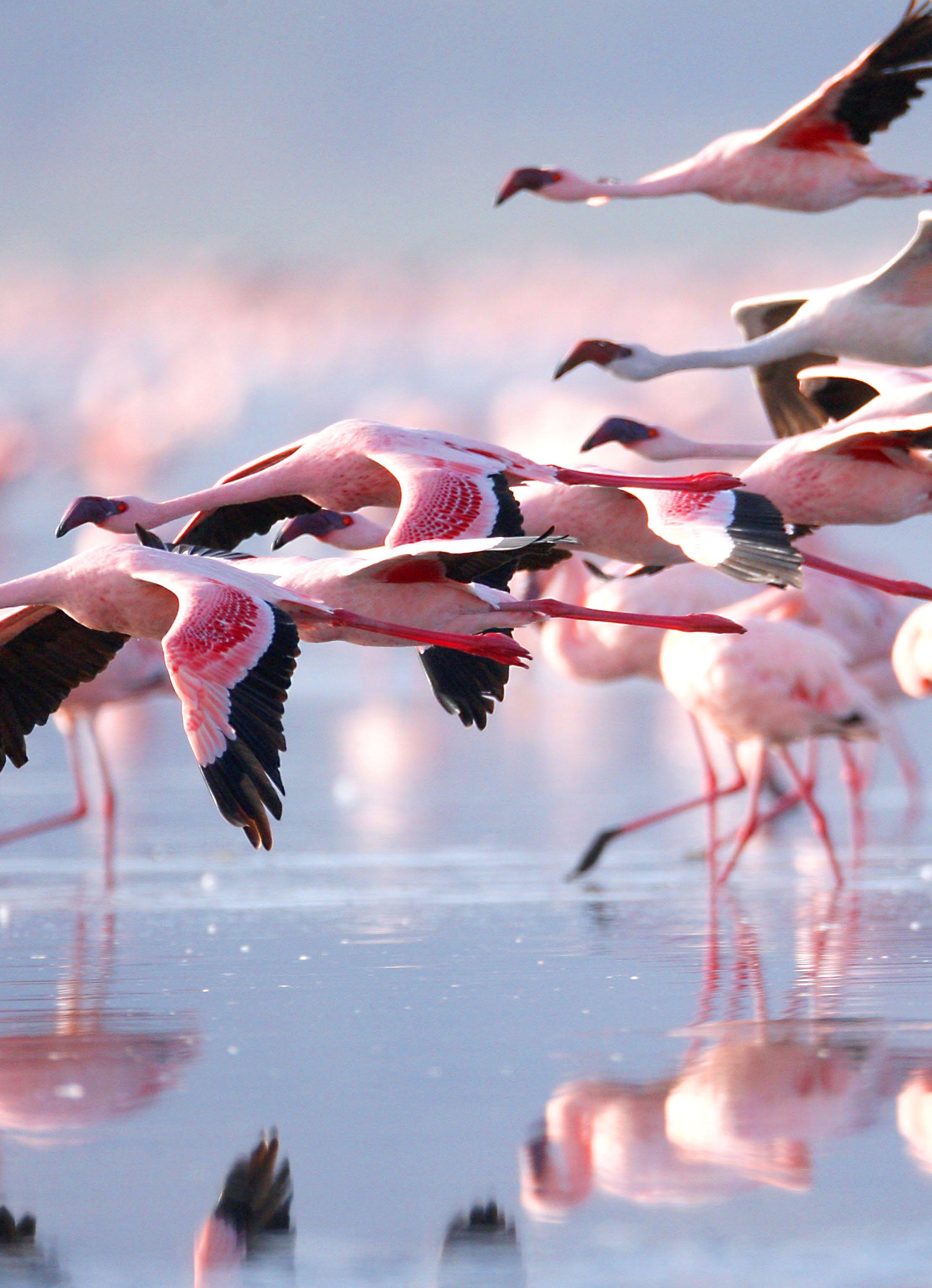 tree-climbing lions, elephants, and flocks of flamingos along the shimmering lake—its beauty once praised by Ernest Hemingway as “the loveliest I had seen in Africa.” Return to lodge in time to freshen up before dinner. (BLD)