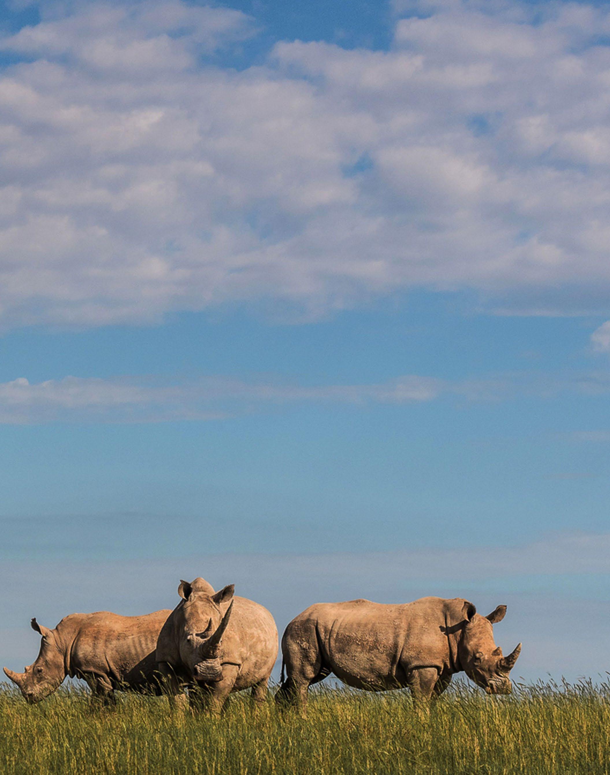 of both black and white rhino, and you have a higher than average chance of spotting a leopard. Other wildlife includes lion, hippo, the rare Rothschild’s giraffe, Colobus monkey, numerous plains game, and 450 species of birds. (BLD)