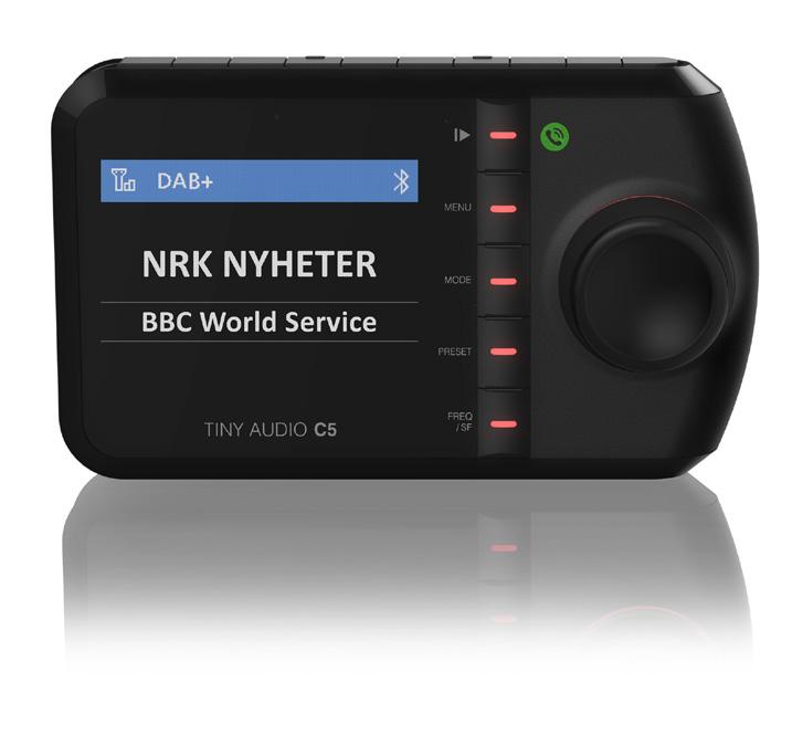 DAB-adapter til bil for selvmontering. Har du bil uten DAB+ radio? I så fall er Tiny C5 enkleste vei til massevis av radiokanaler i digital lydkvalitet. Den henter strøm fra 12V-uttaket i bilen din, og kommer med en DAB-antenne av høy kvalitet. Tiny Audio C5 har et stort fargedisplay og hele 10 forvalgsknapper for favorittstasjoner. Det gir raske, trafikksikre kanalskifter og enkel betjening. Ved kjøring over lange distanser vil Tiny C5 selv finne eventuelle nye radiofrekvenser for kanalen du hører på, du behøver bare velge hva du vil lytte til. Tiny Audio C5 er også utstyrt med handsfree og bluetooth streaming fra telefon.