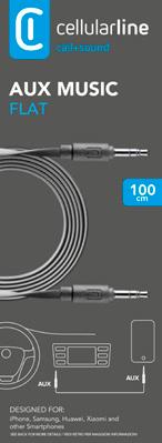 Lydkabel AUX/3.5mm. 100 cm. Flat kabel forhindrer irriterende Knuter.