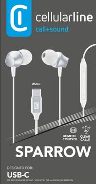 Kapselformede øreplugger for enheter med USB-C kontakt. Innebygd fjernkontroll for justering av volumet samt kontrollere avspilling. Du kan også svare på og avslutte samtaler ved å trykke på fjernkontrollen.