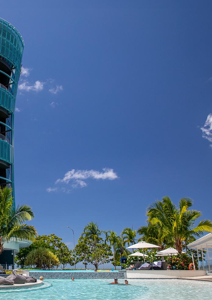 Even those not staying at Novotel Cairns Oasis Resort are welcome to perch poolside with a drink or two.
