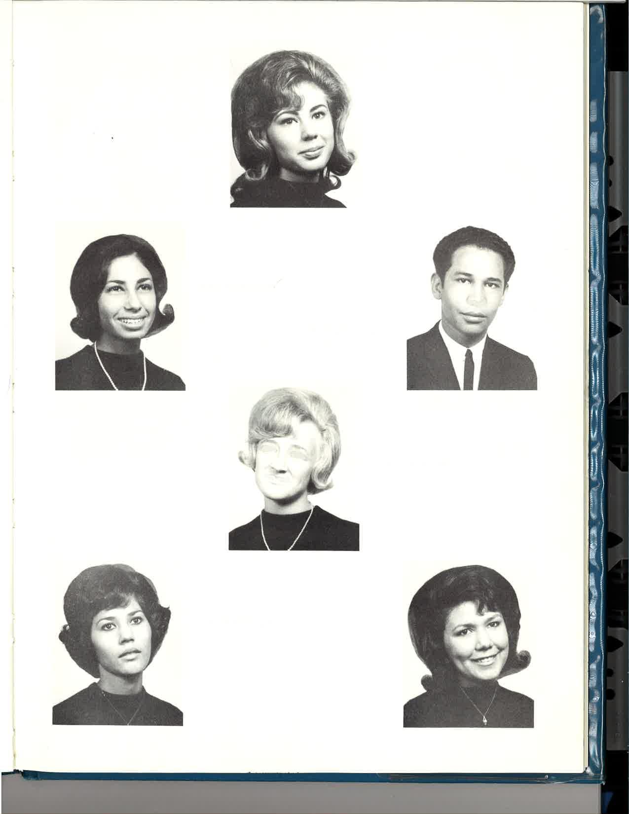 Nina Smith, Marcia Simons, Rosemary Loesa, Mary Martinez, and Janice Grambly, members of the Journalism club and the 'rvoice of Seton Highr', review articles they have written.