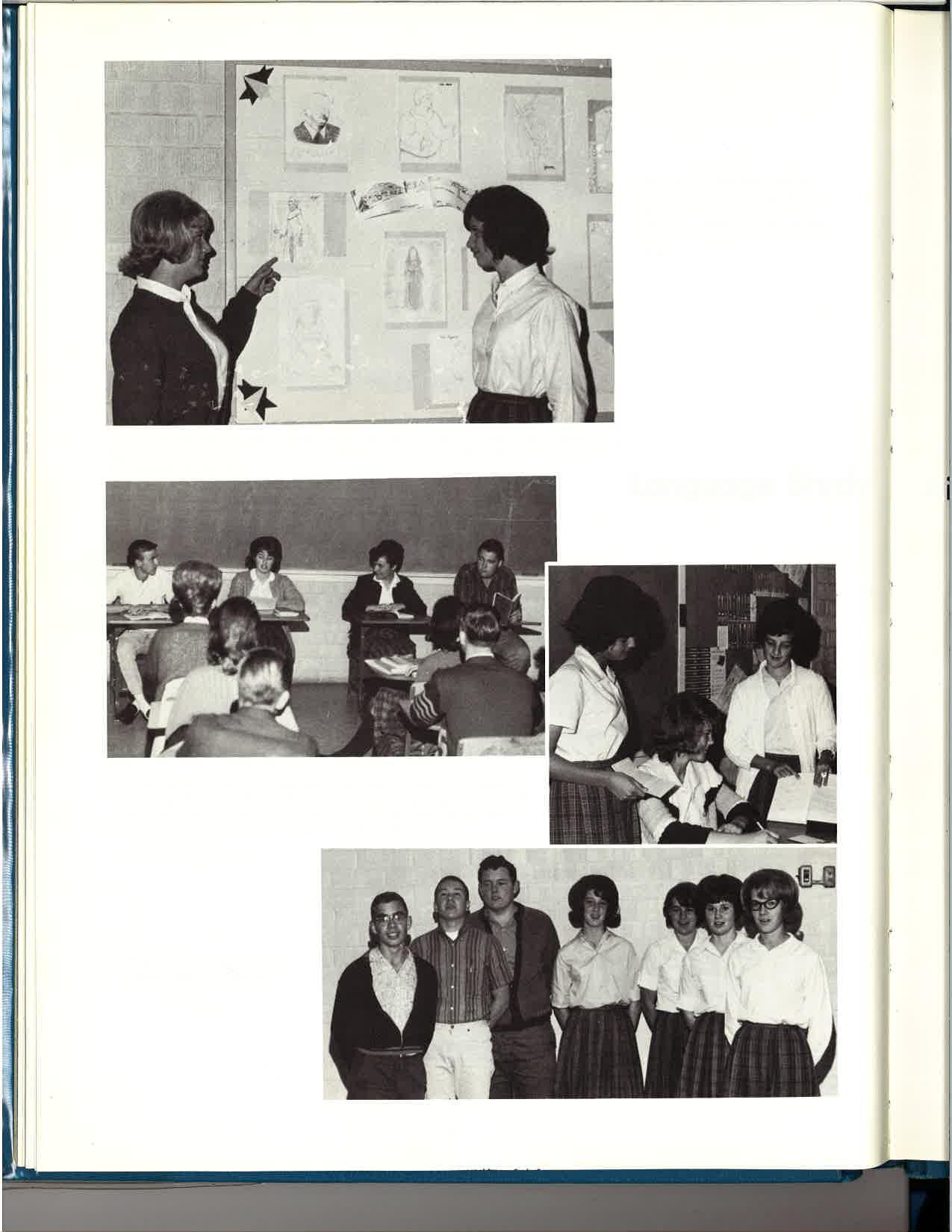 Lucia Rodarte, Peggy Langstore, and Cheryl Grambley refer to their English ARTS AND SKILLS before writing a letter to their Puerto Rican Pen Pals. This the the first year that Setonians have had pen pals as their English class projects.
