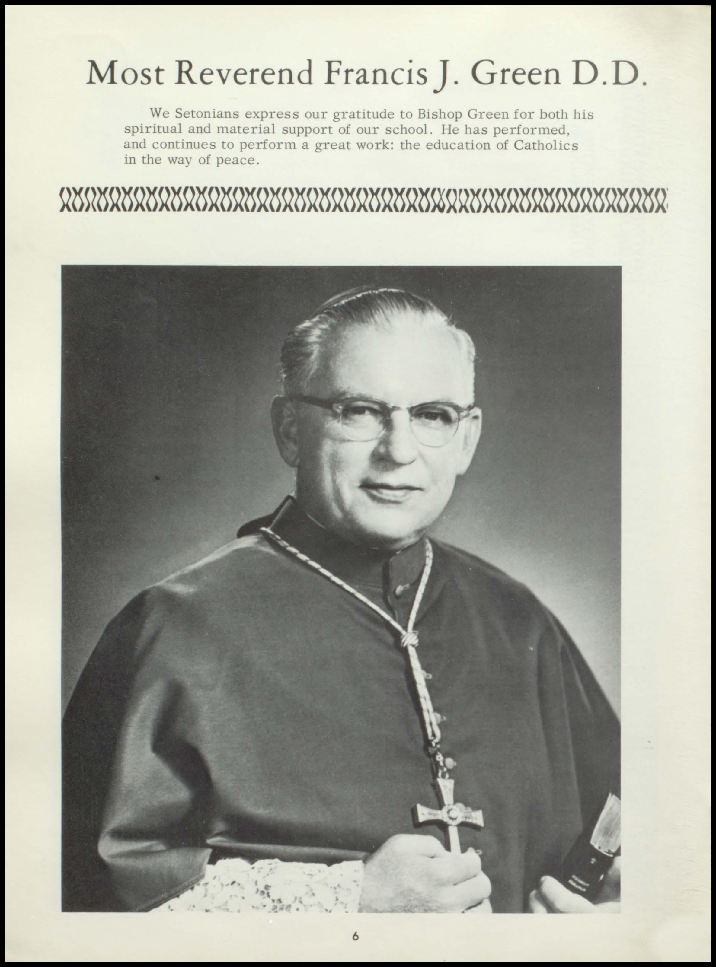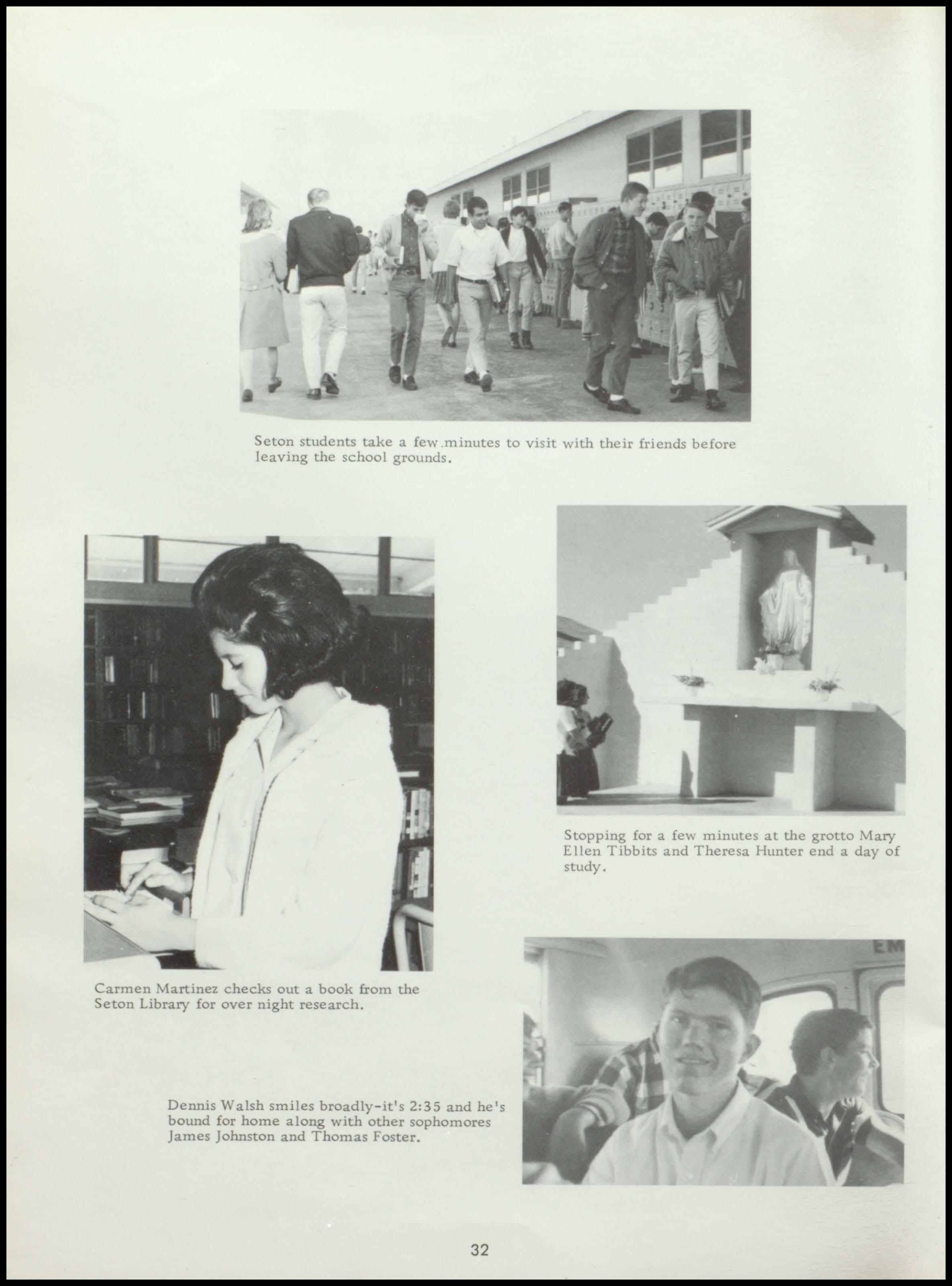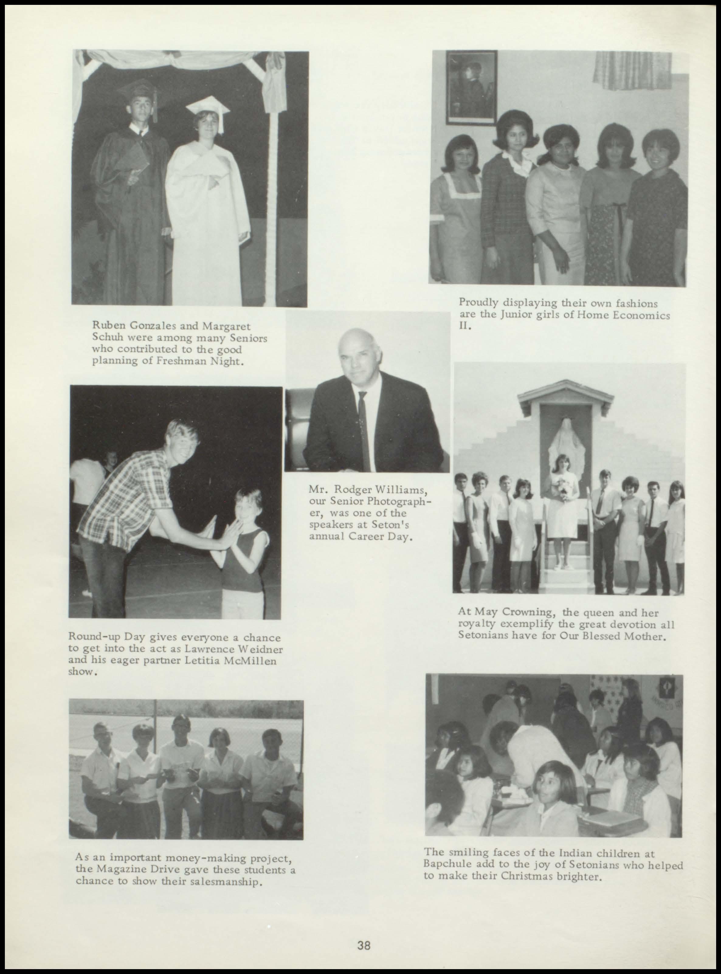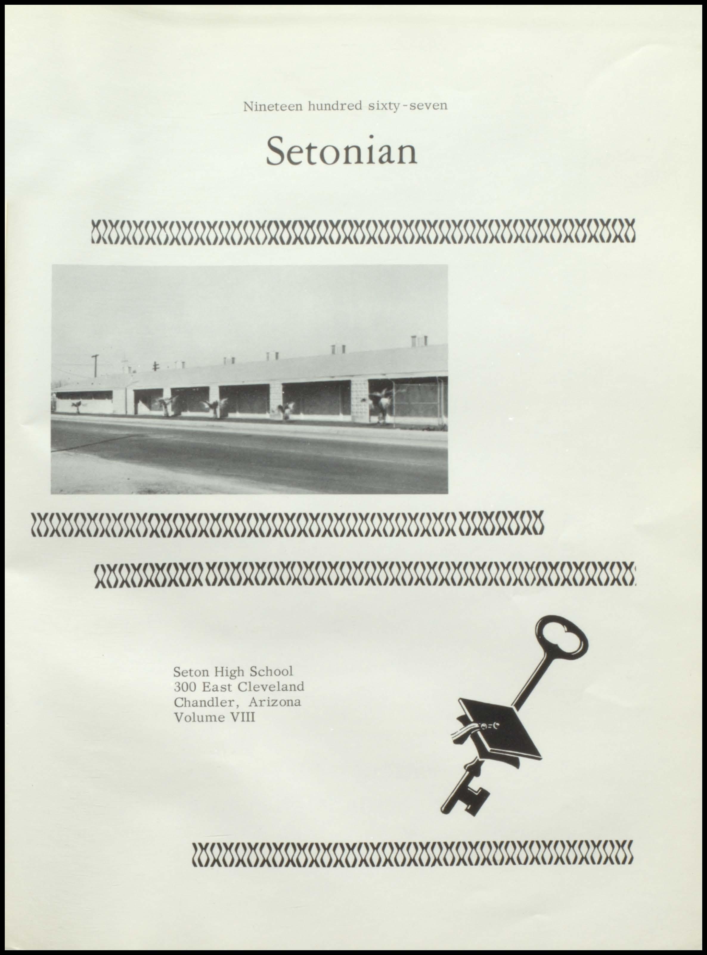 Four years ago the class of 1967 began a rewarding stay at Seton. During this period a once unsure group of freshmen, new to the responsibilities and freedoms of high school, has now grown in mind, body, and spirit to become this year's seniors. With perseverance and honest interest, the seniors have sought out the maturity and knowledge which should be the end products of education. Through intelligent use of the scholastic, religious, athletic, and extra- curricular programs offered by our school, and through the personal studentteacher relationships which Seton, as a small institution, affords her students, the graduating class has come to a realization of its worth
