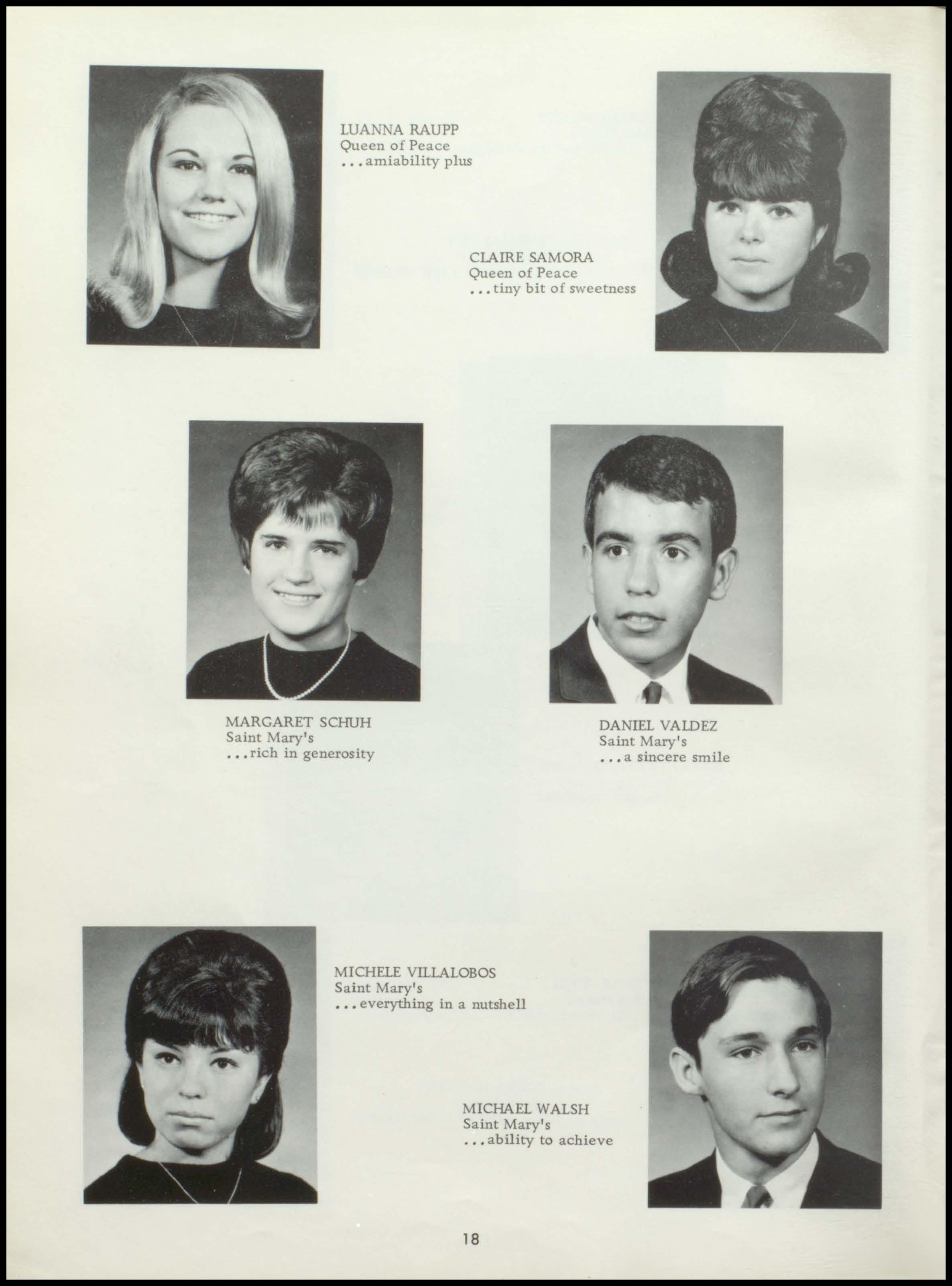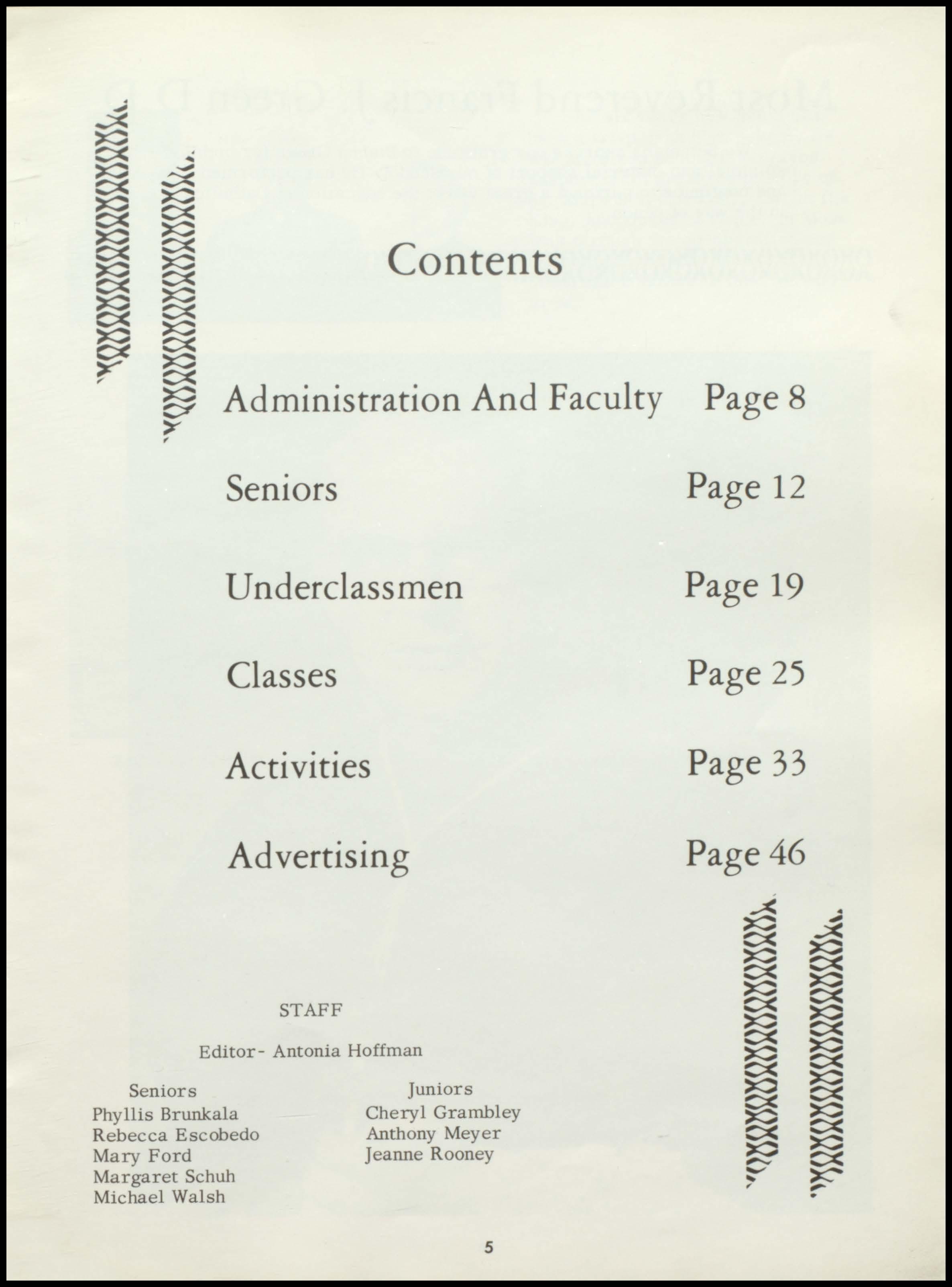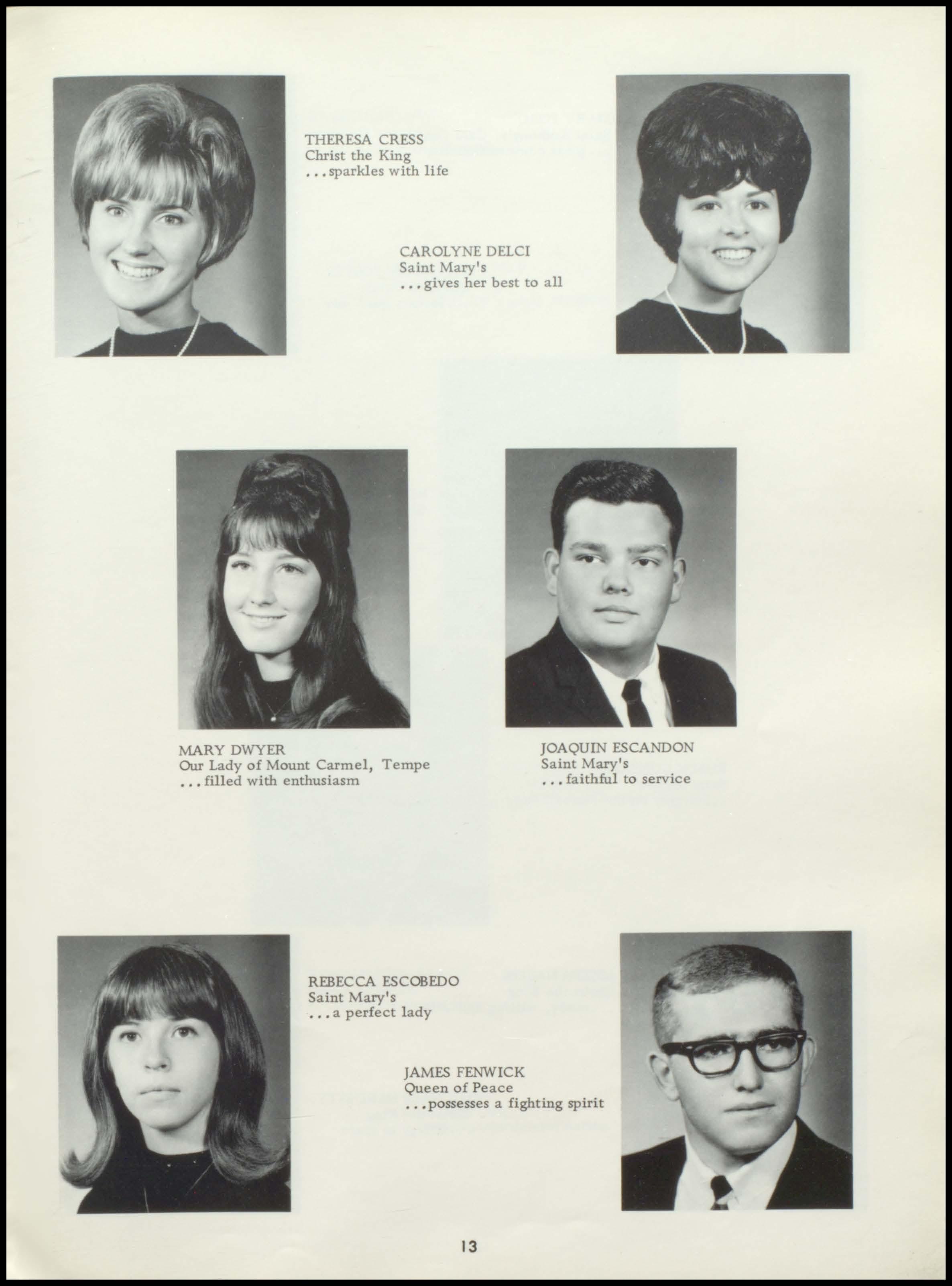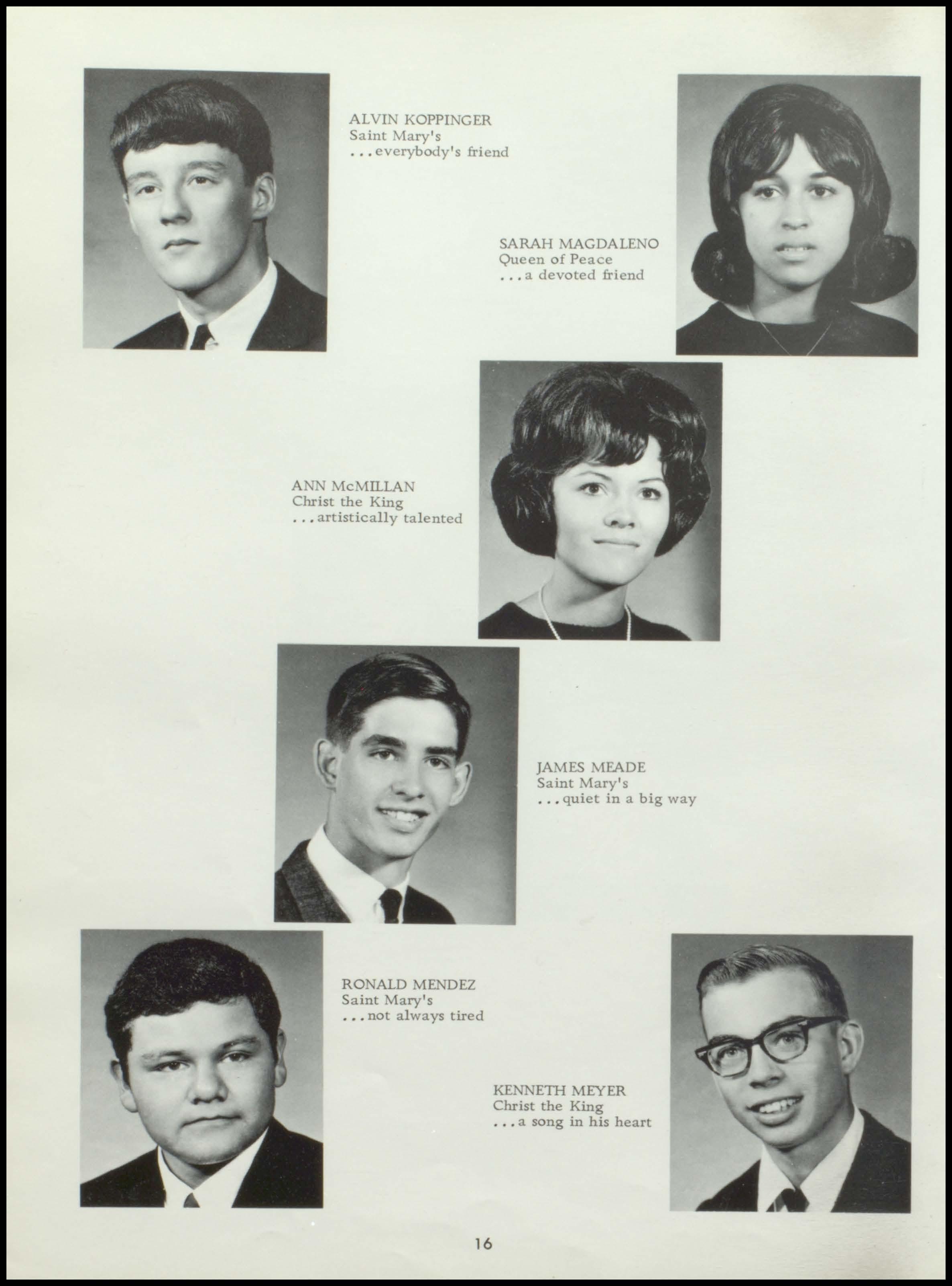 Four years ago the class of 1967 began a rewarding stay at Seton. During this period a once unsure group of freshmen, new to the responsibilities and freedoms of high school, has now grown in mind, body, and spirit to become this year's seniors. With perseverance and honest interest, the seniors have sought out the maturity and knowledge which should be the end products of education. Through intelligent use of the scholastic, religious, athletic, and extra- curricular programs offered by our school, and through the personal studentteacher relationships which Seton, as a small institution, affords her students, the graduating class has come to a realization of its worth