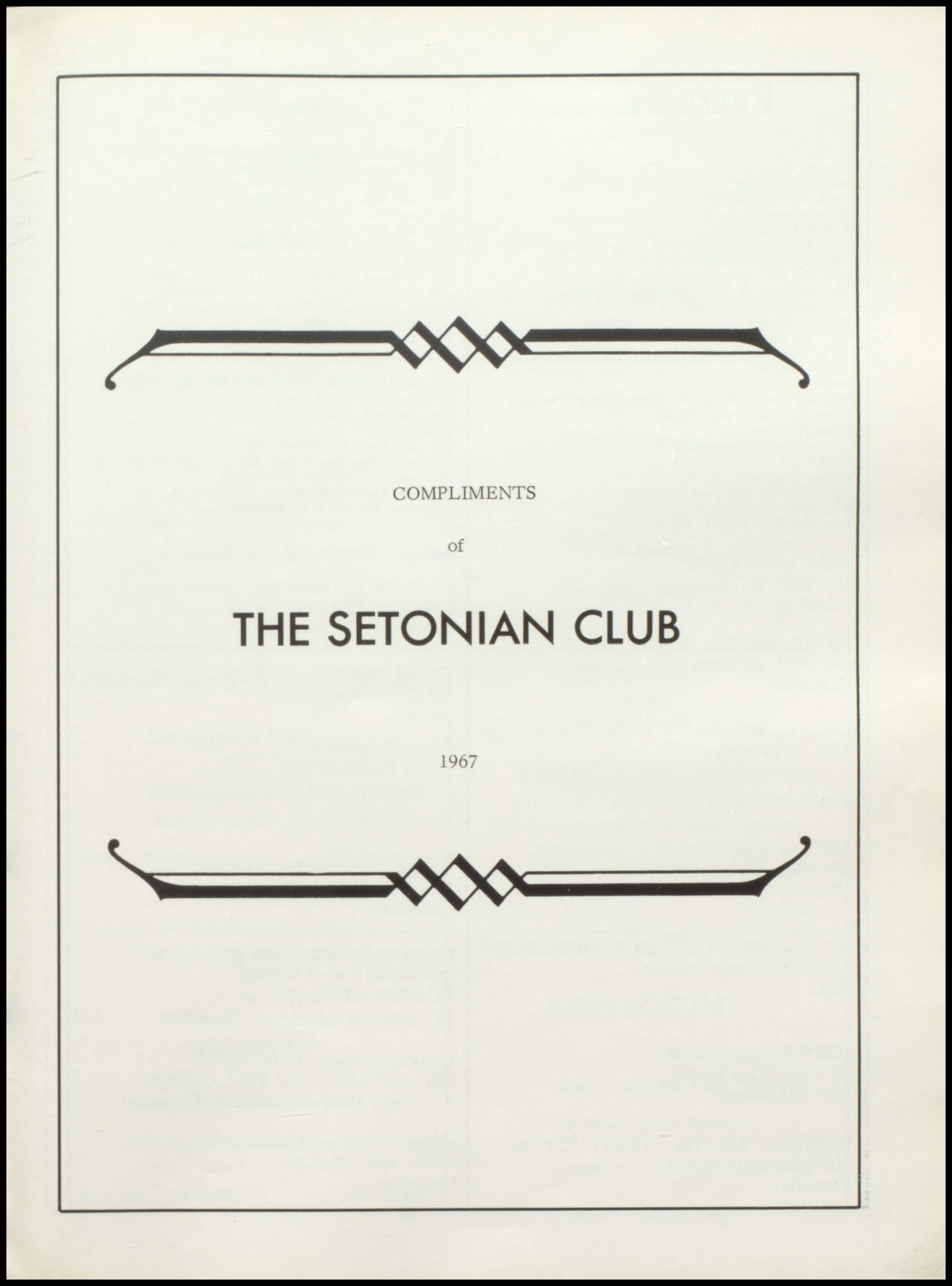 COMPLIMENTS of DOCTOR AND MRS. WILLIAM H. FORD AND SETONIANS