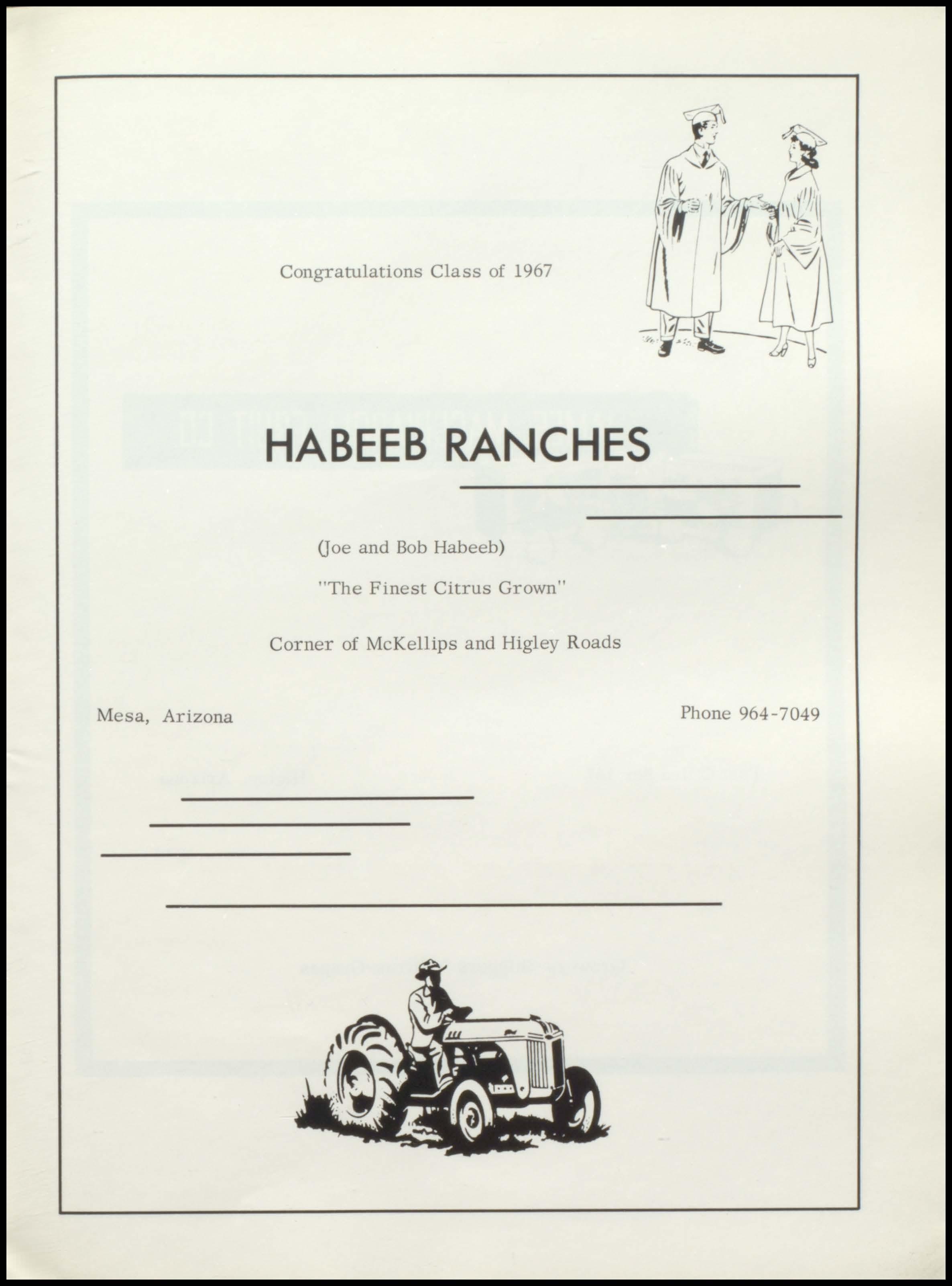 "The Finest Citrus Grown" Corner of McKellips and Higley Roads Mesa, Arizona Phone 964-7049
