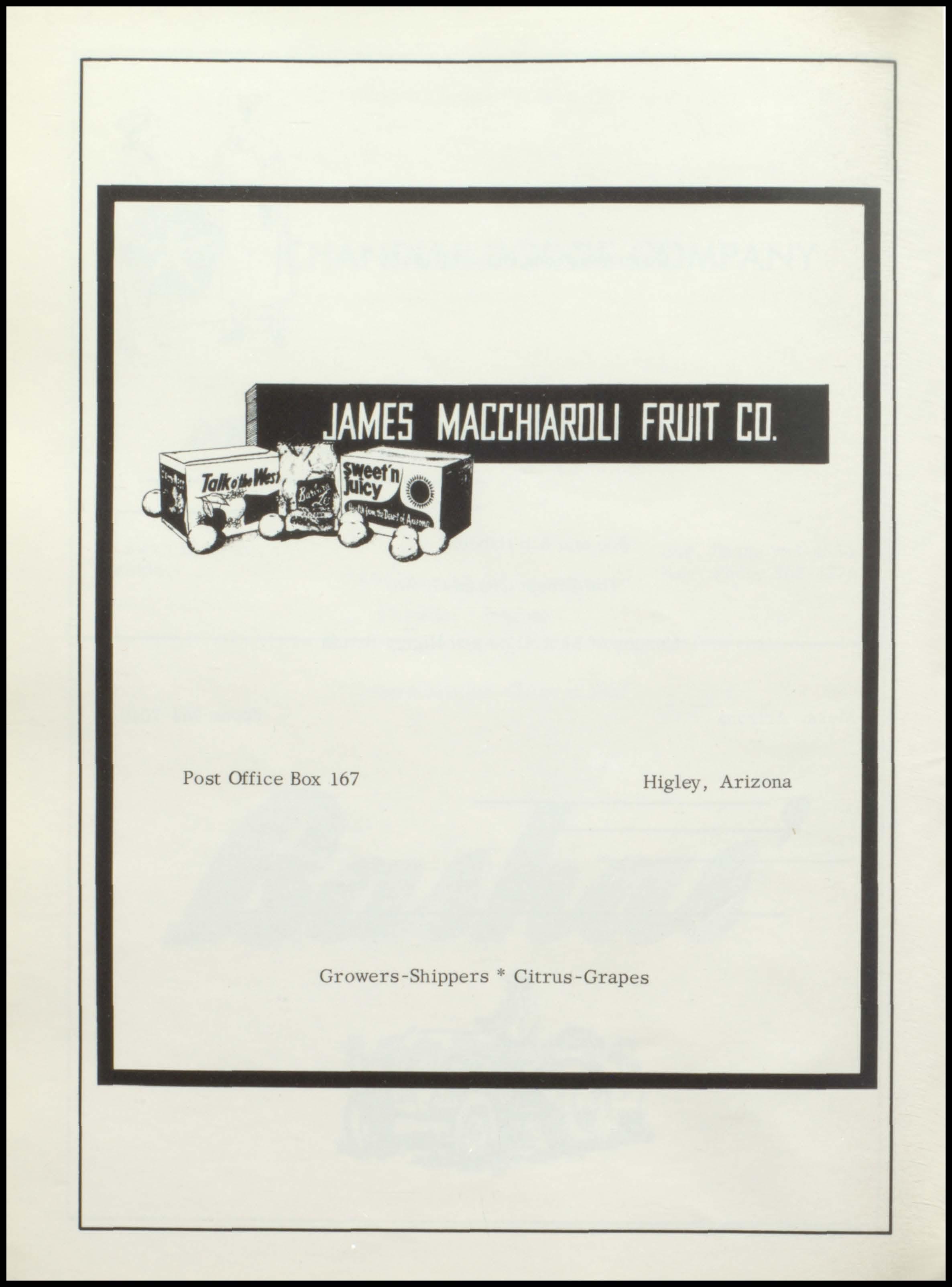 Post Office Box 167 Higley, Arizona Growers -Shippers * Citrus -Grapes