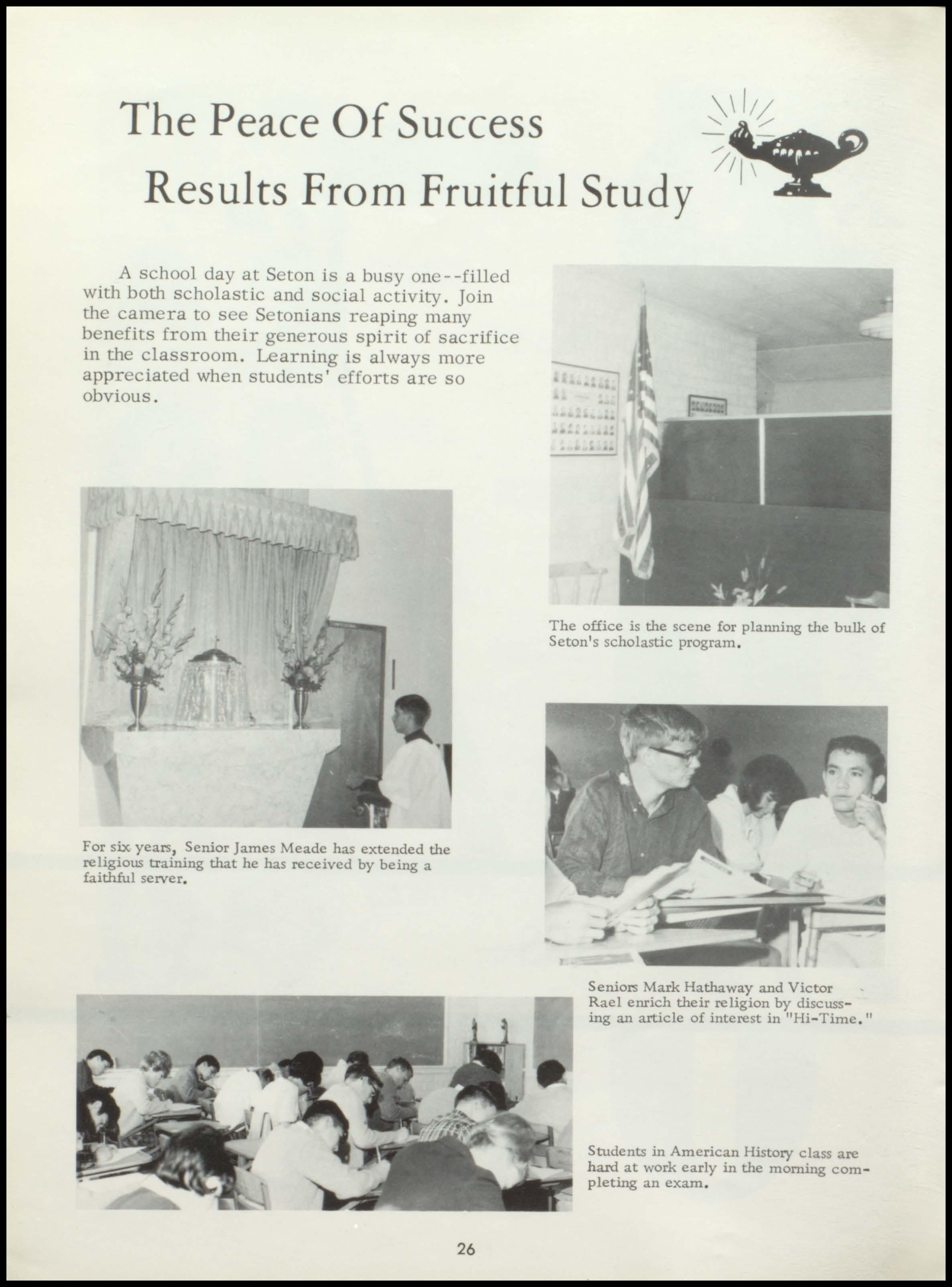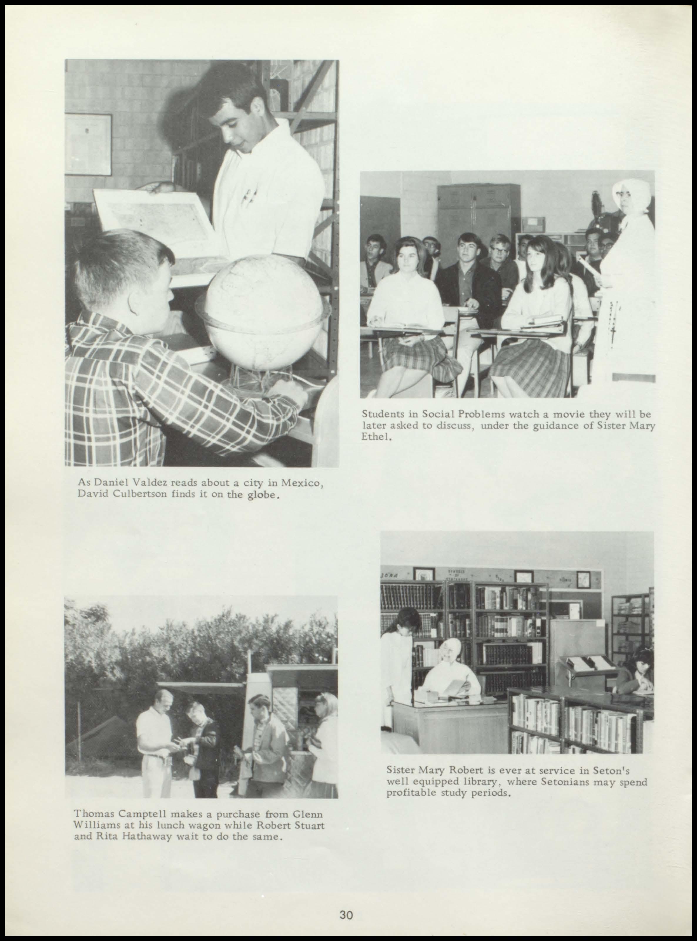 A school day at Seton is a busy one- -filled with both scholastic and social activity. Join the camera to see Setonians reaping many benefits from their generous spirit of sacrifice in the classroom. Learning is always more appreciated when students' efforts are so obvious .