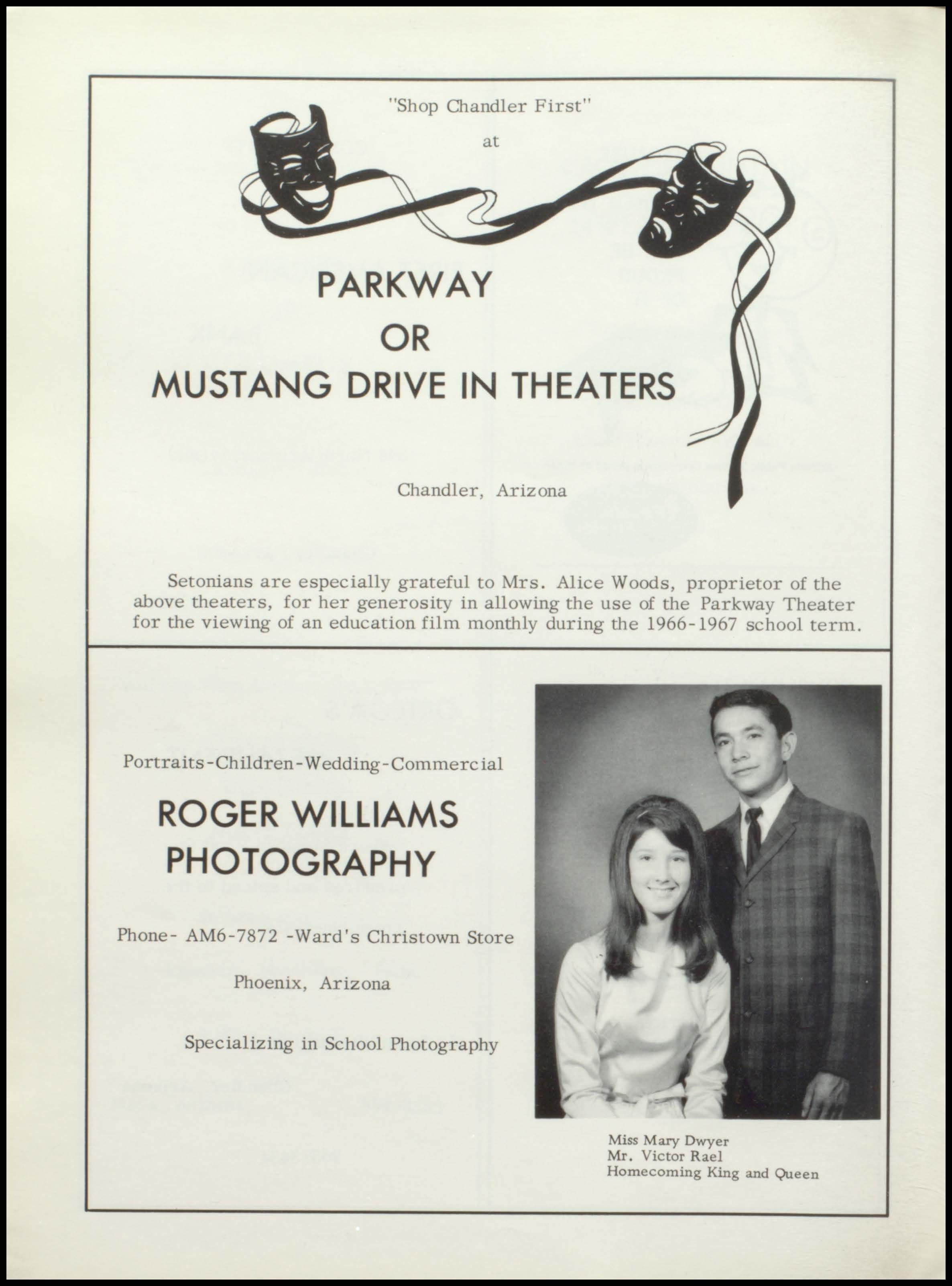 Portraits -Children- Wedding-Commercial ROGER WILLIAMS PHOTOGRAPHY Phone- AM6-7872 -Ward's Christown Store Phoenix, Arizona Specializing in School Photography Miss Mary Dwyer Mr. Victor Rael Homecoming King and Queen