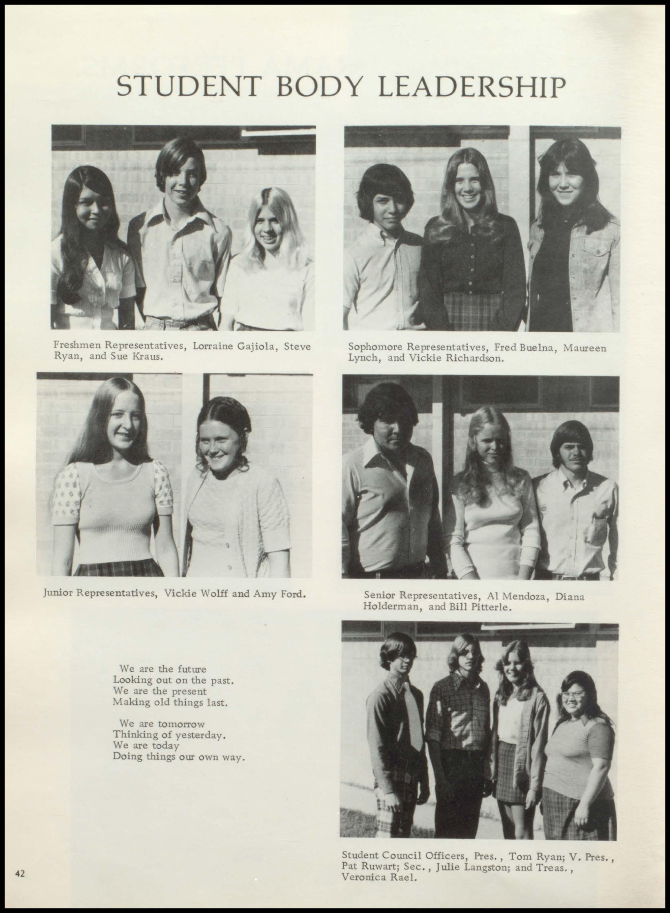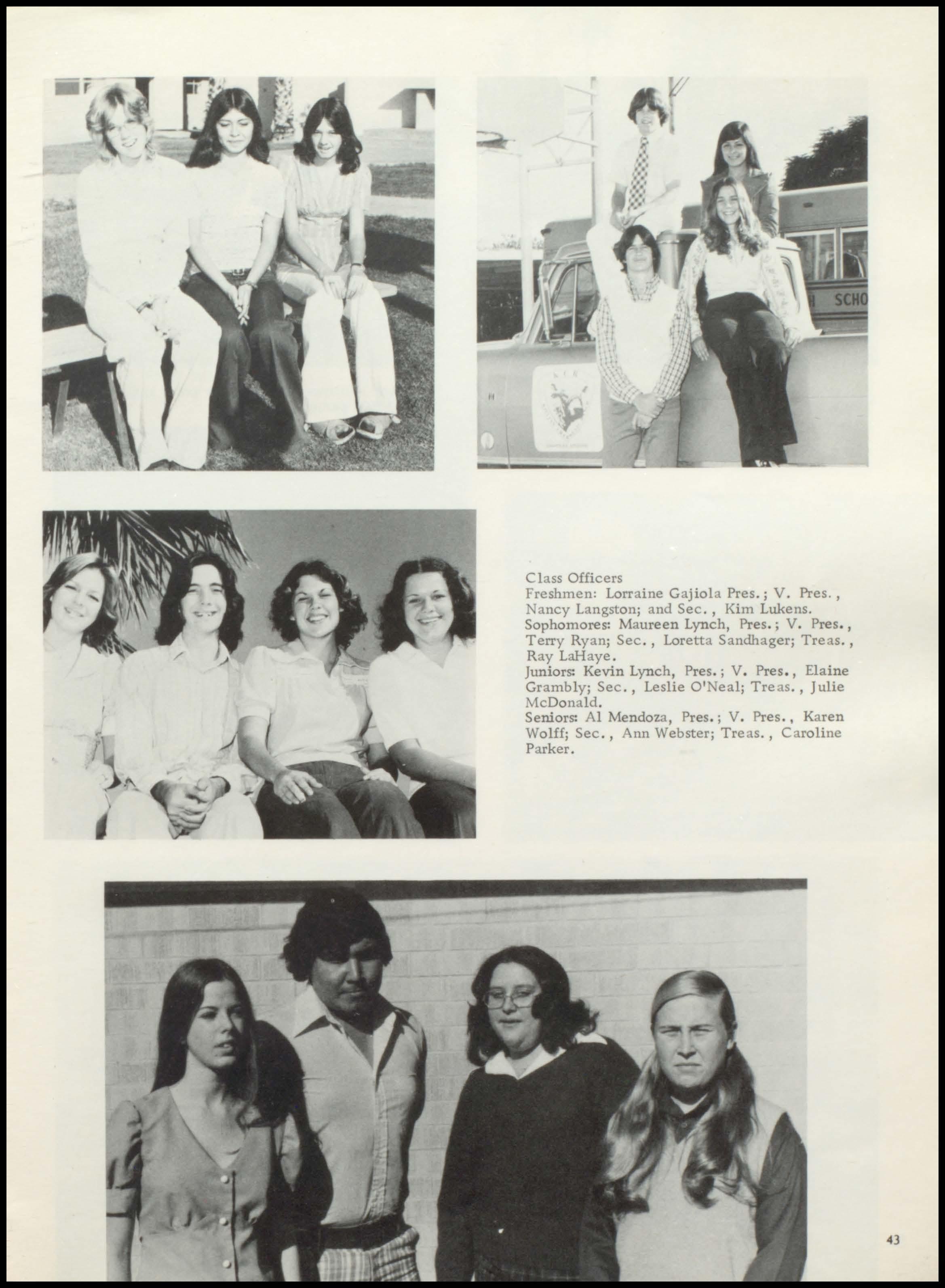 Freshmen: Lorraine Gajiola Pres.; V. Pres. , Nancy Langston; and Sec., Kim Lukens.
