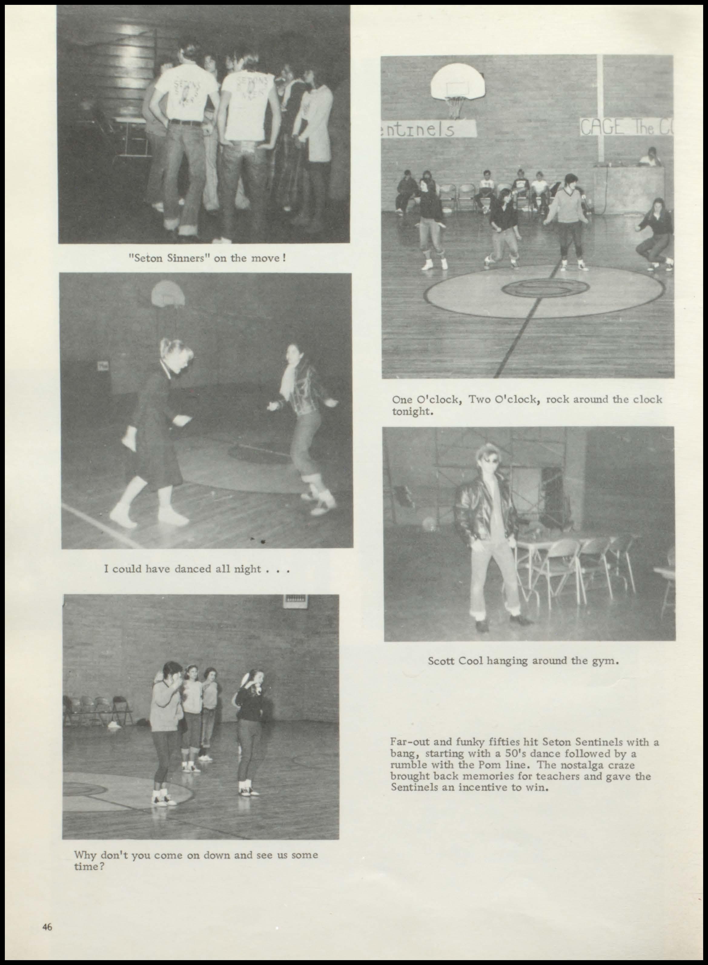 Far-out and funky fifties hit Seton Sentinels with a bang, starting with a SO's dance followed by a rumble with the Porn line. The nostalga craze brought back memories for teachers and gave the Sentinels an incentive to win.
