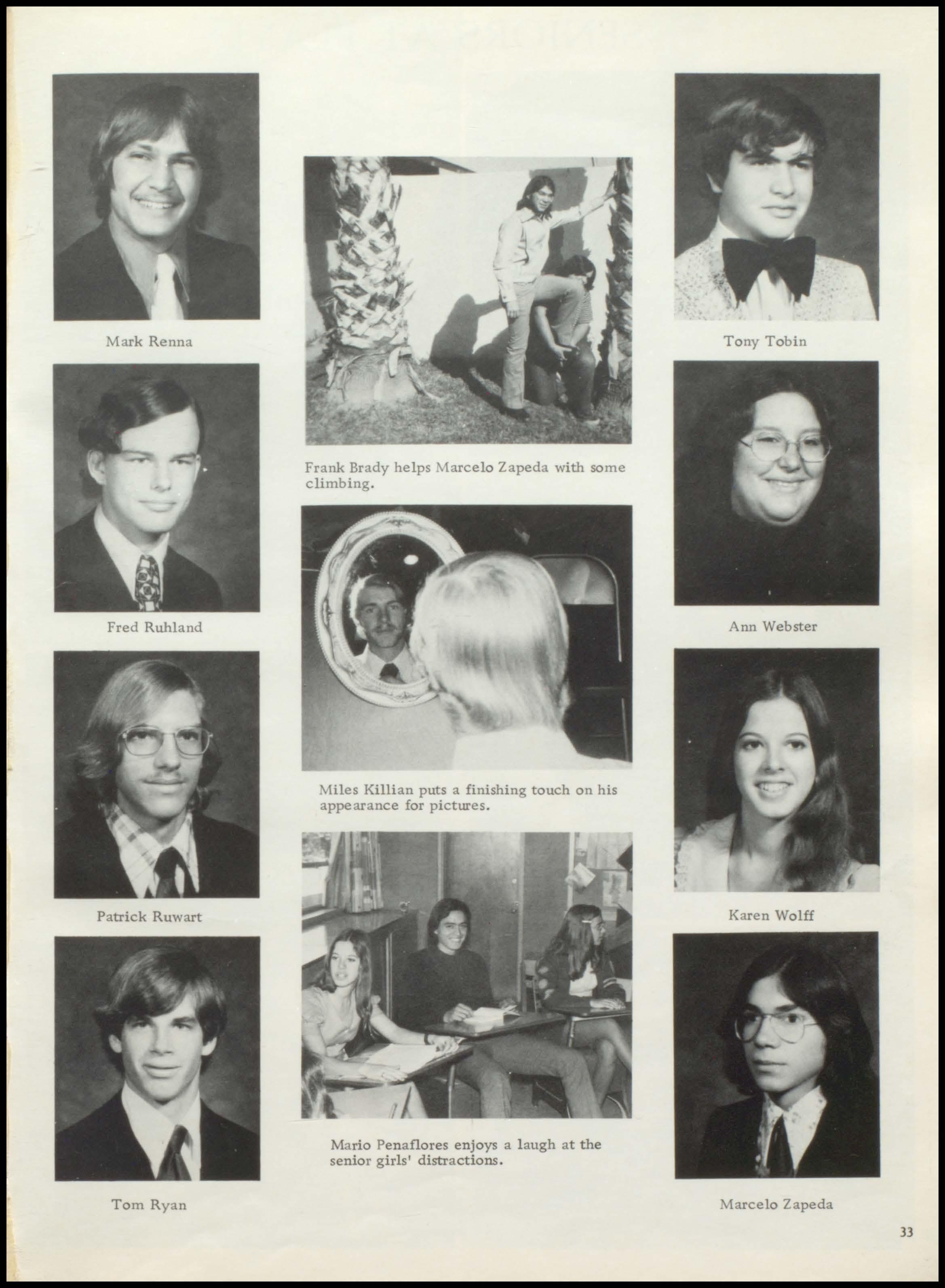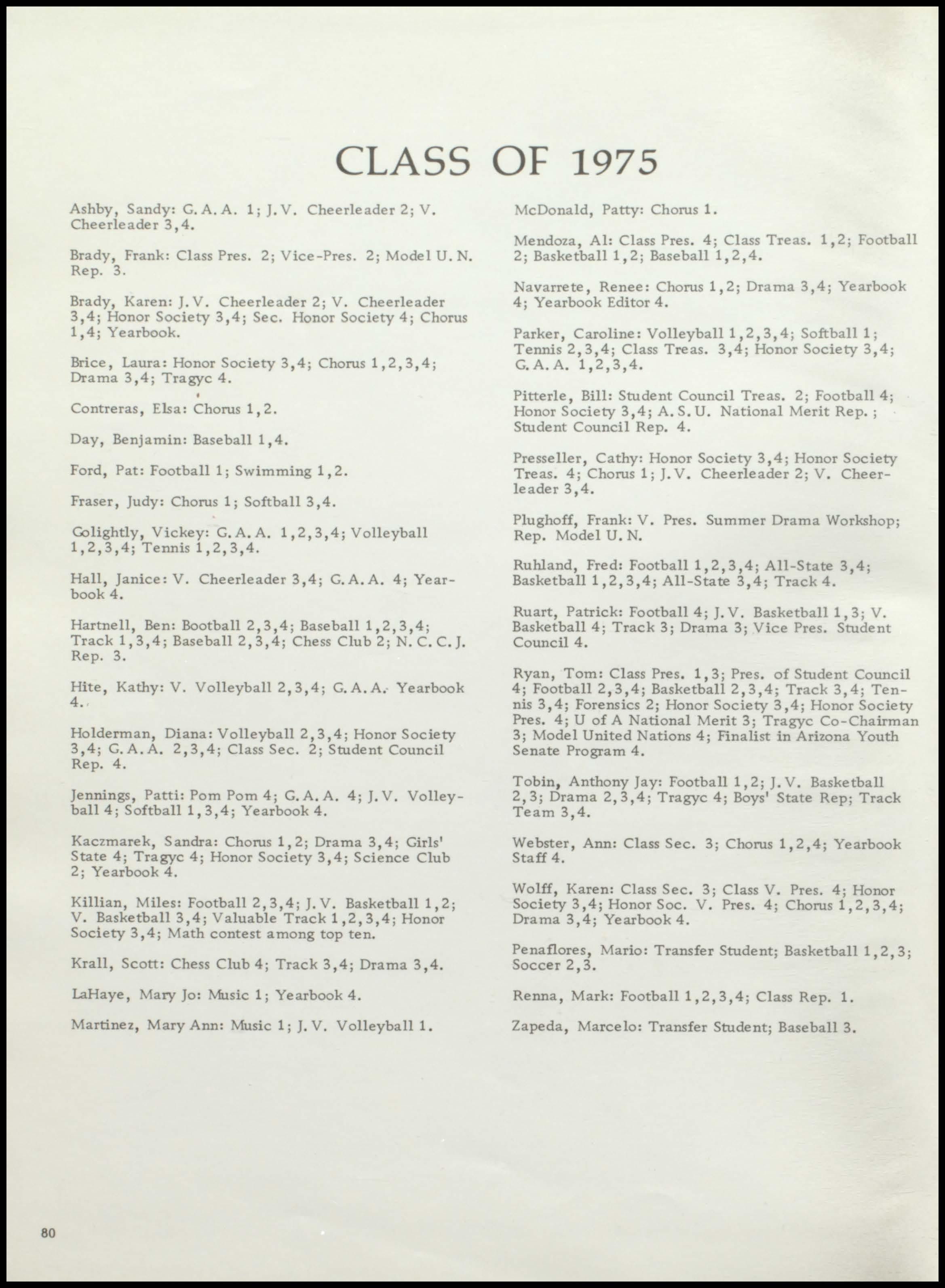 Ryan, Tom: Class Pres. 1, 3; Pres. of Student Council 4; Football 2,3,4; Basketball2,3,4; Track 3,4; Tennis 3,4; Forensics 2; Honor Society 3,4; Honor Society Pres. 4; U of A National Merit 3; Tragyc Co-Chairman 3; Model United Nations 4; Finalist in Arizona Youth Senate Program 4.