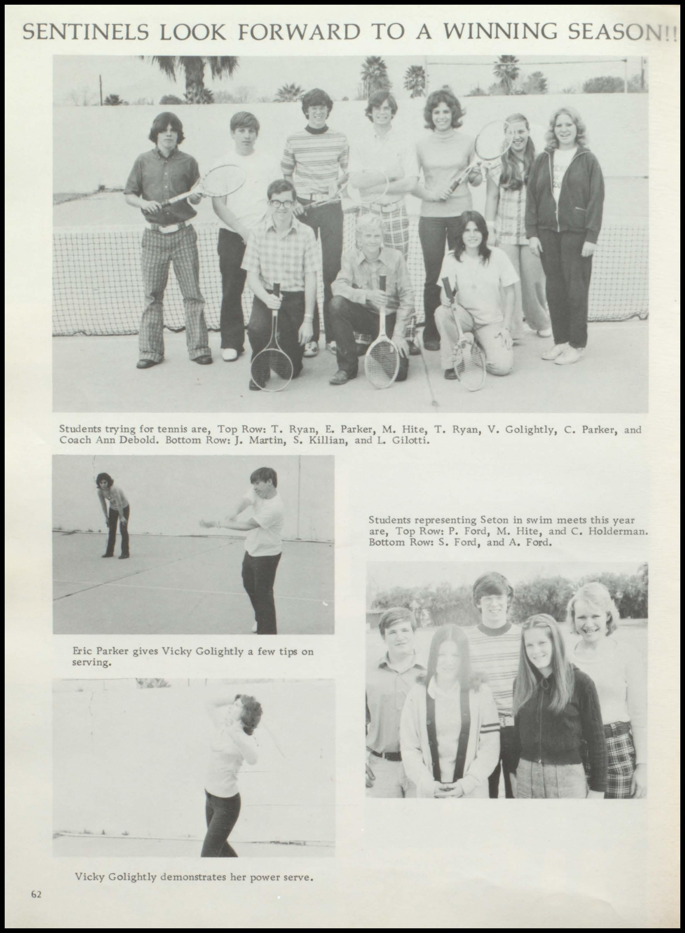 Parker, Caroline: Volleyball1,2,3,4; Softballl; Tennis 2, 3,4; Class Treas. 3,4; Honor Society 3,4; G.A.A. 1,2,3,4.