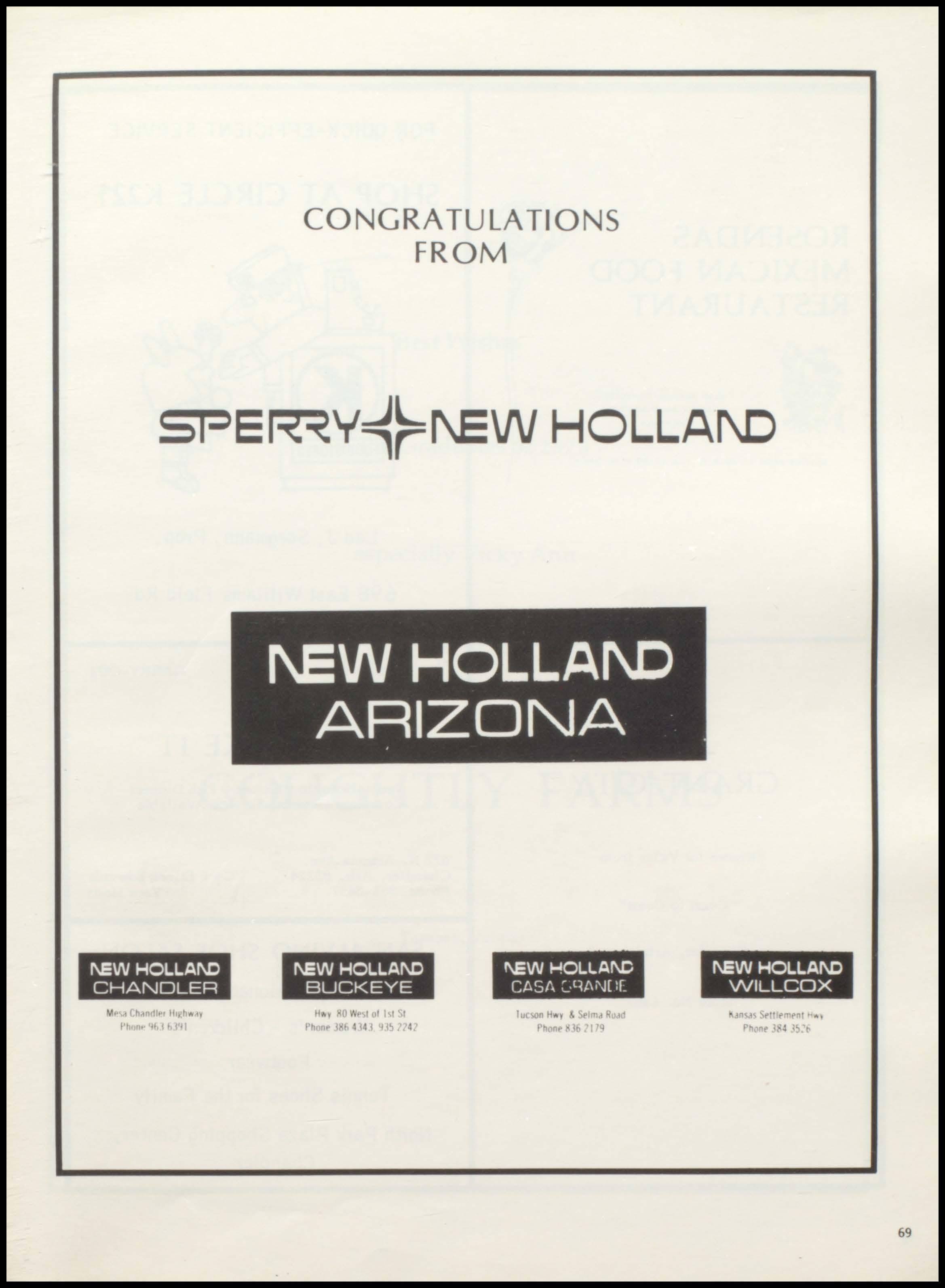 1\EW HOLLAI\0 CHANDLER "1-· t .., ,., l'h n• fd CONGRATULATIONS FROM 1\EW HOLLAr\0 ARIZONA 1\EW HOLLAI\0 BUCKEYE h 'l y Vn ,f I Ph nt 1 • 4141 4l f\EW HOLLAI\C CAS/\ ::_.qAi\1[ :r_ • t.• v • RIUd Phonr lJ N 1\EW HOLLAI\0 WILLCOX 69
