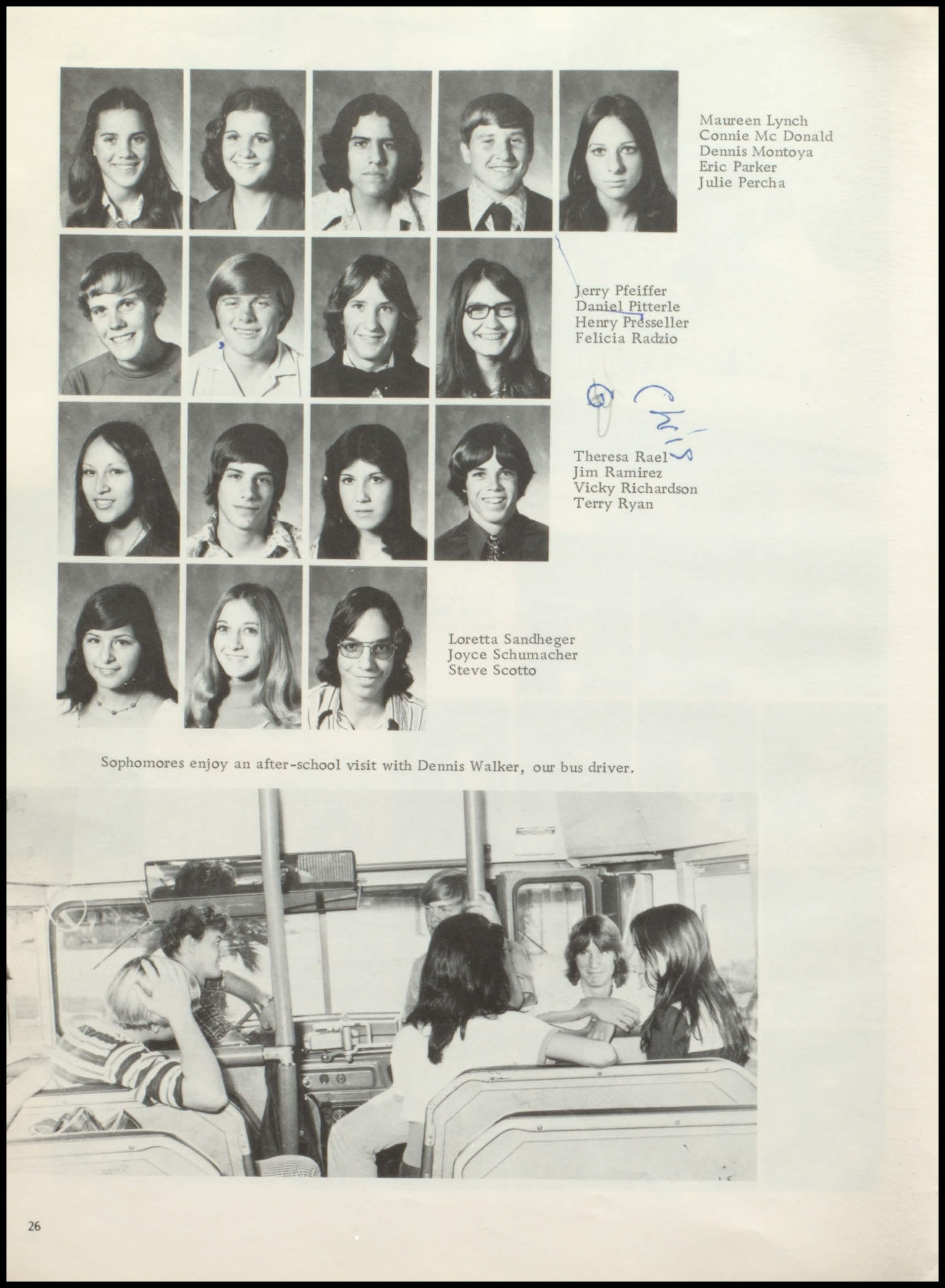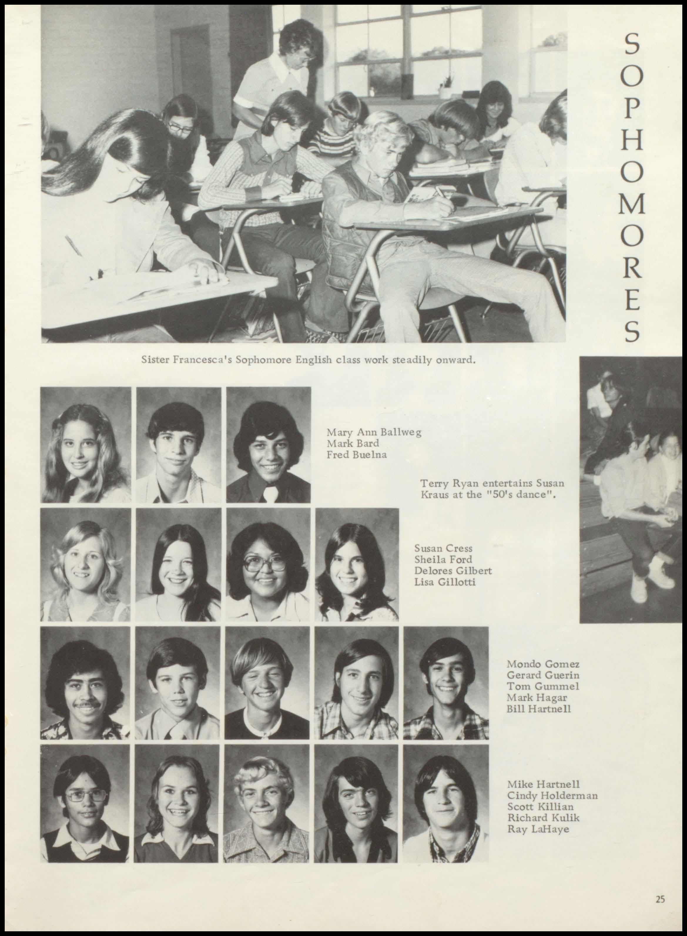 Sophomores: Maureen Lynch, Pres.; V. Pres., Terry Ryan; Sec , Loretta Sandhager; Treas., Ray LaHaye.