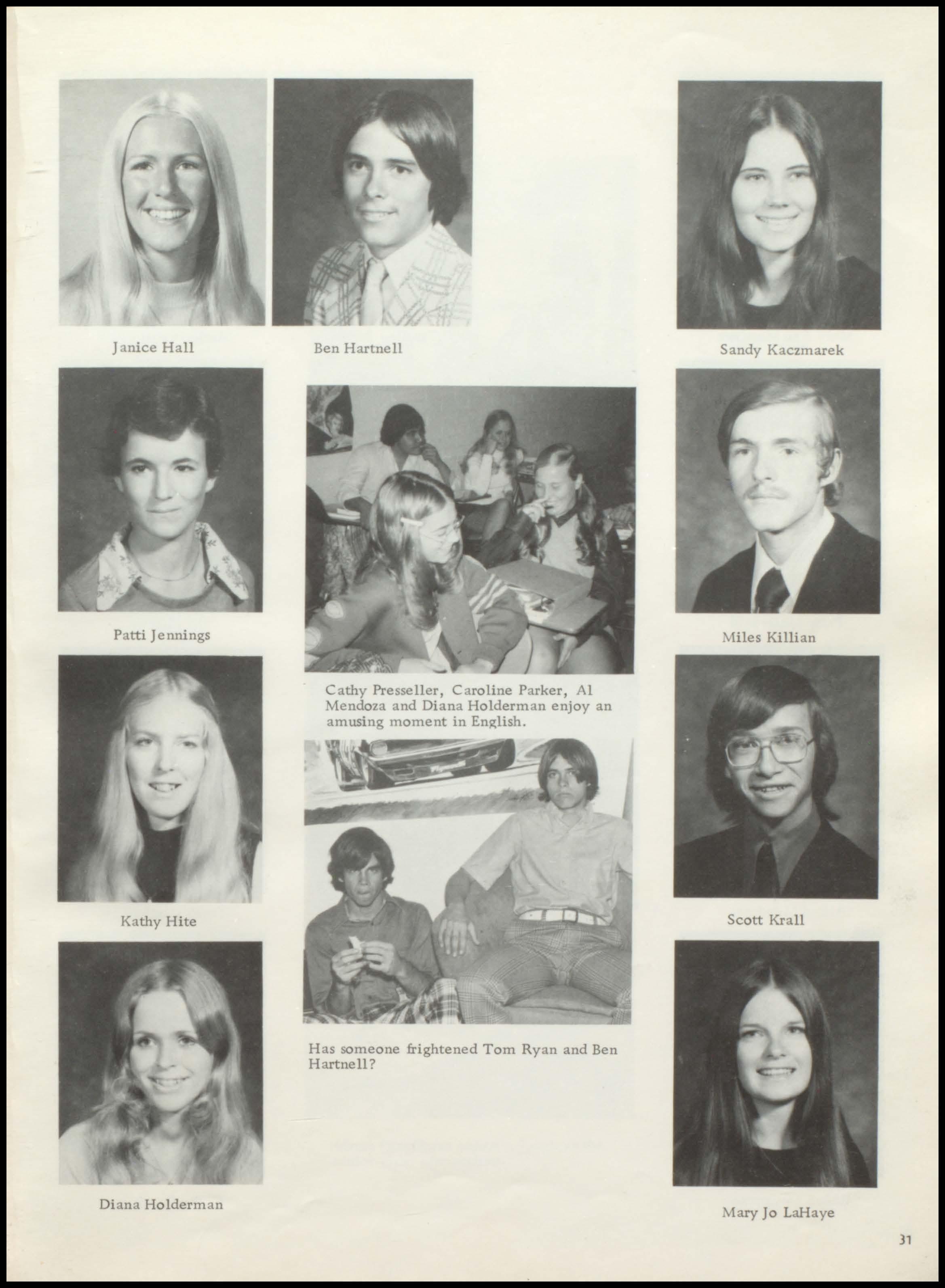 Jennings, Patti: Porn Porn 4; G. A. A. 4; J. V. Volleyball4; Softballl, 3,4; Yearbook 4.