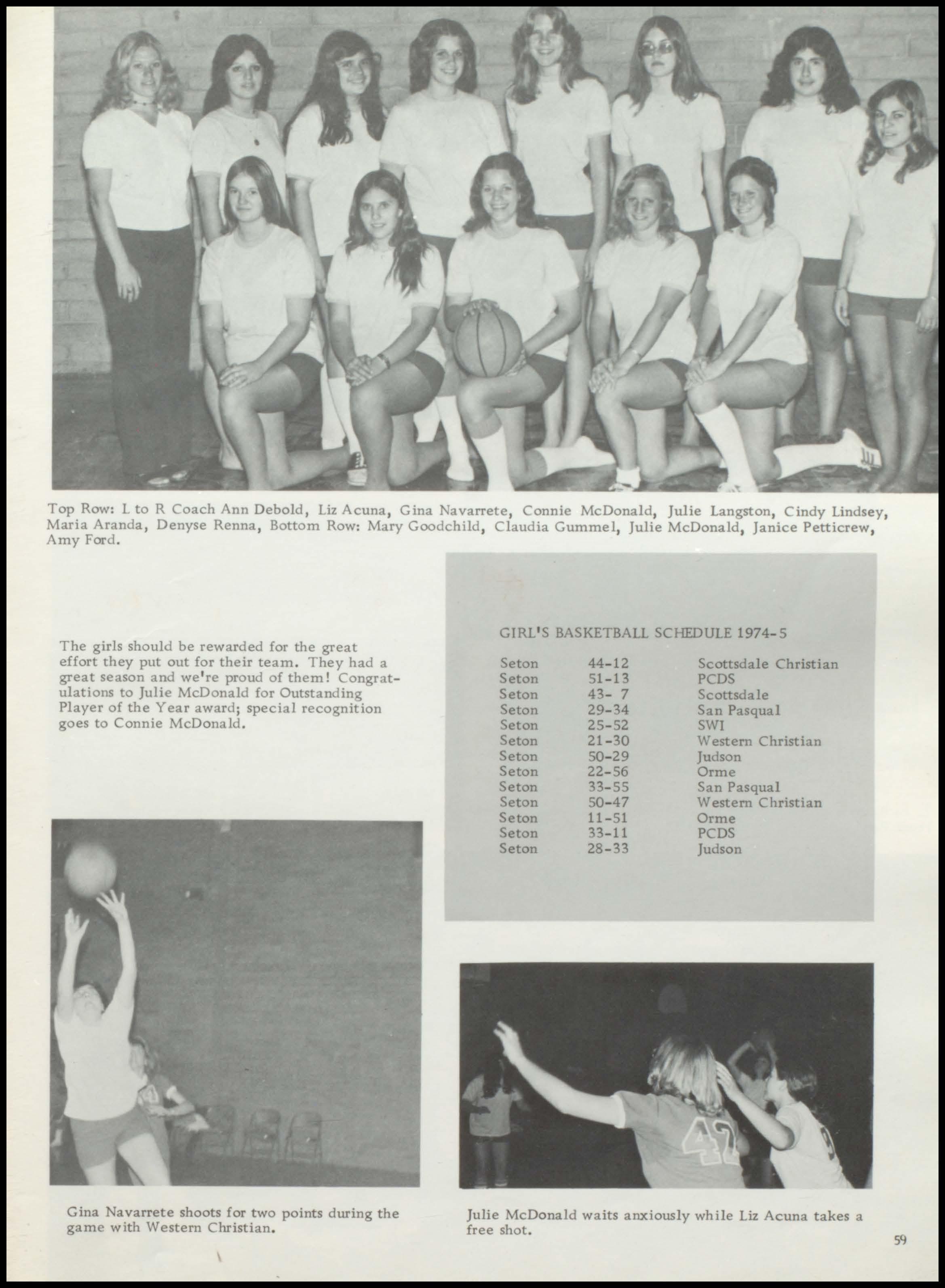 GIRL'S BASKETBALL SCHEDULE 1974-5 Seton Seton Seton Seton Seton Seton Seton Seton Seton Seton Seton Seton Seton 44-12 51-13 43- 7 29-34 25-52 21-30 50-29 22-56 33-55 50-47 11-51 33-11 28-33 Scottsdale Christian PCDS Scottsdale San Pasqual SWI Western Christian Judson Orme San Pasqua! Western Christian Orme PCDS Judson