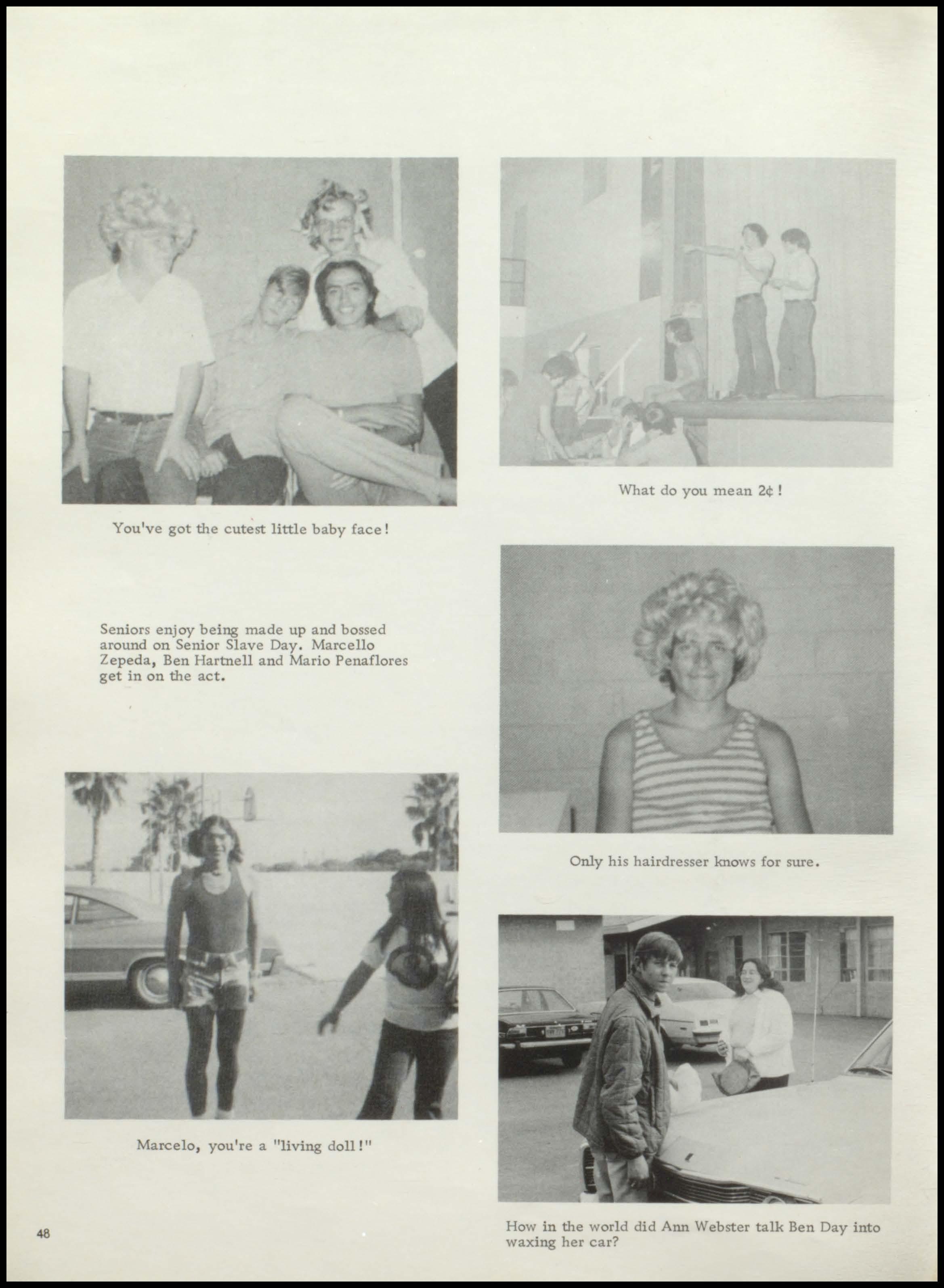 Seniors enjoy being made up and bossed around on Senior Slave Day . Marcello Zepeda , Ben Hartnell and Mario Penaflores get in on the act .